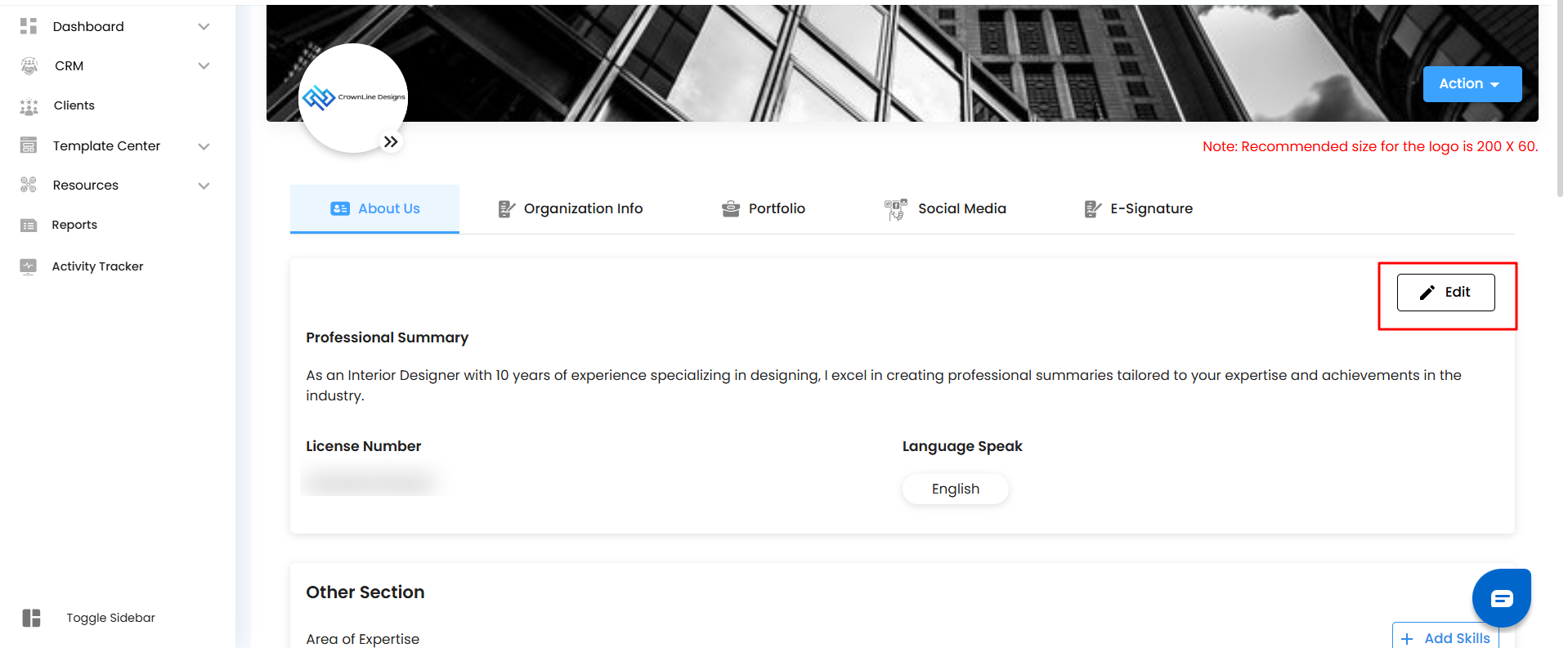 - To modify organization details, click on "Edit", make necessary changes, and then click "Save".