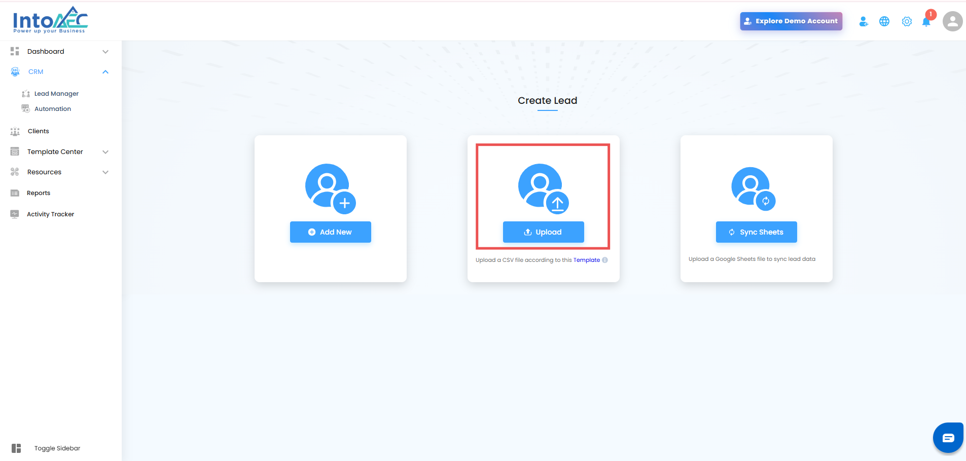 Use the upload option to select your completed template, then click View Leads to preview the imported data.