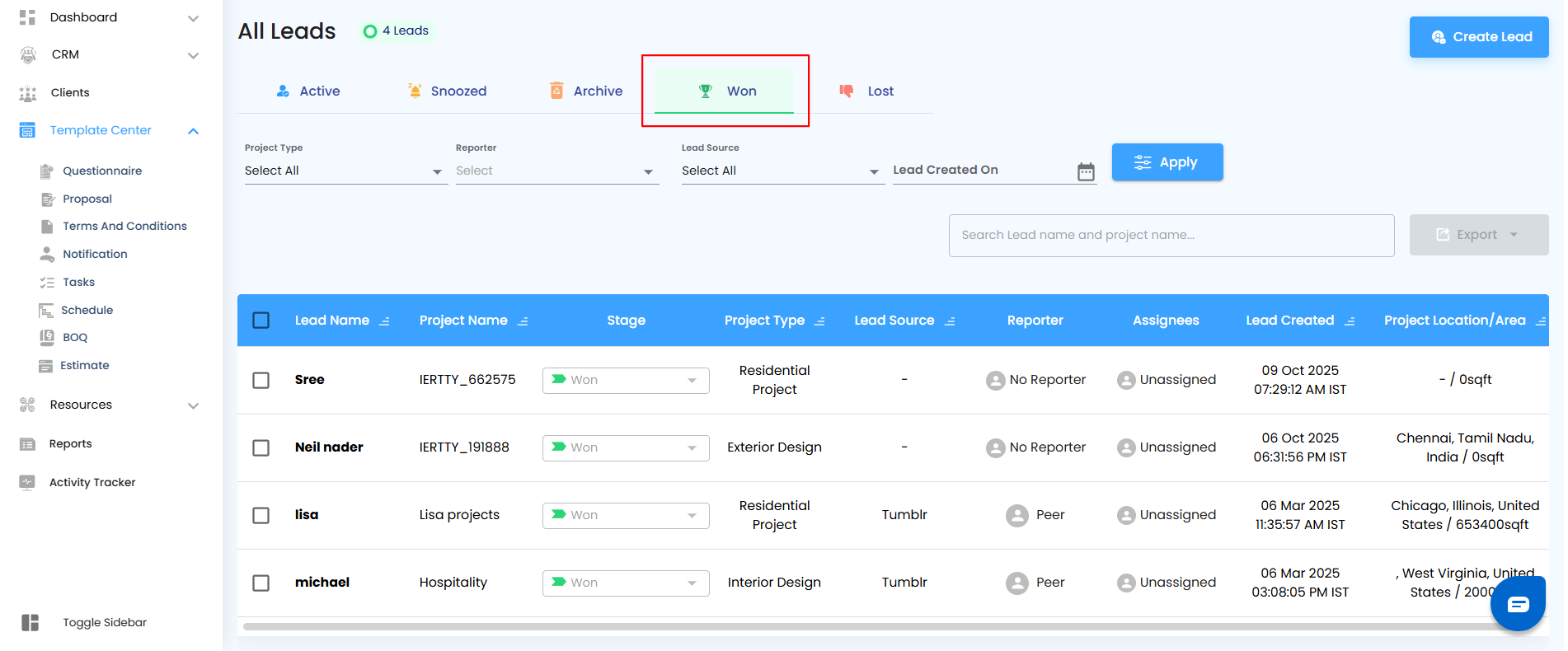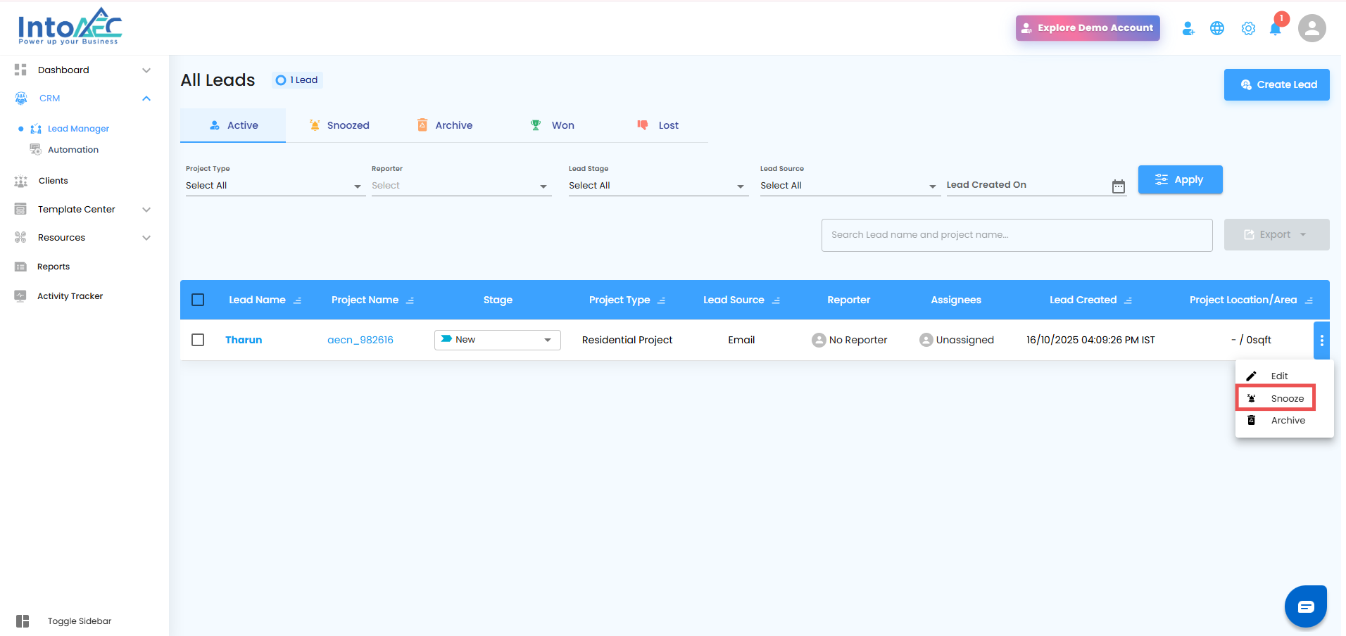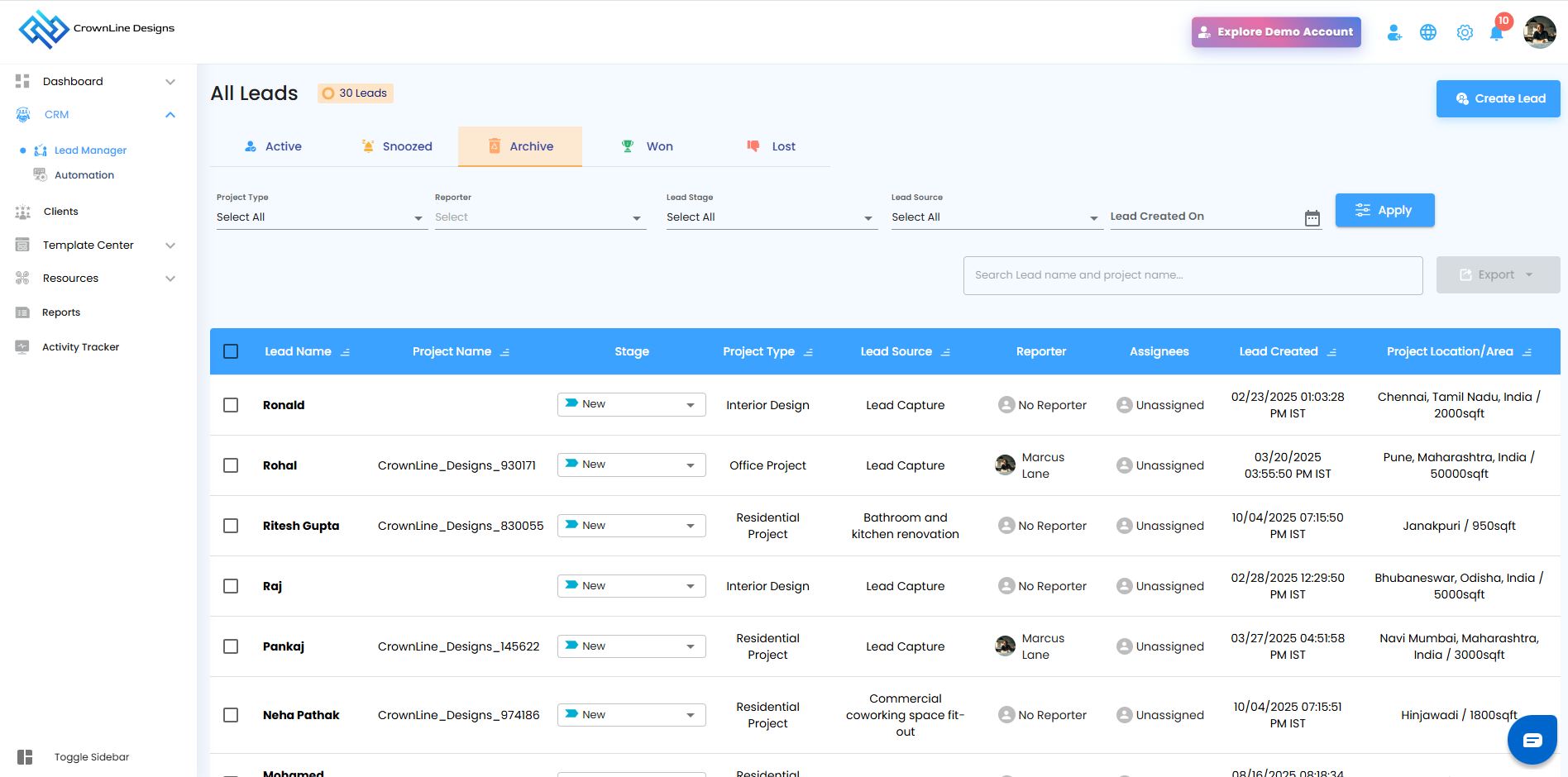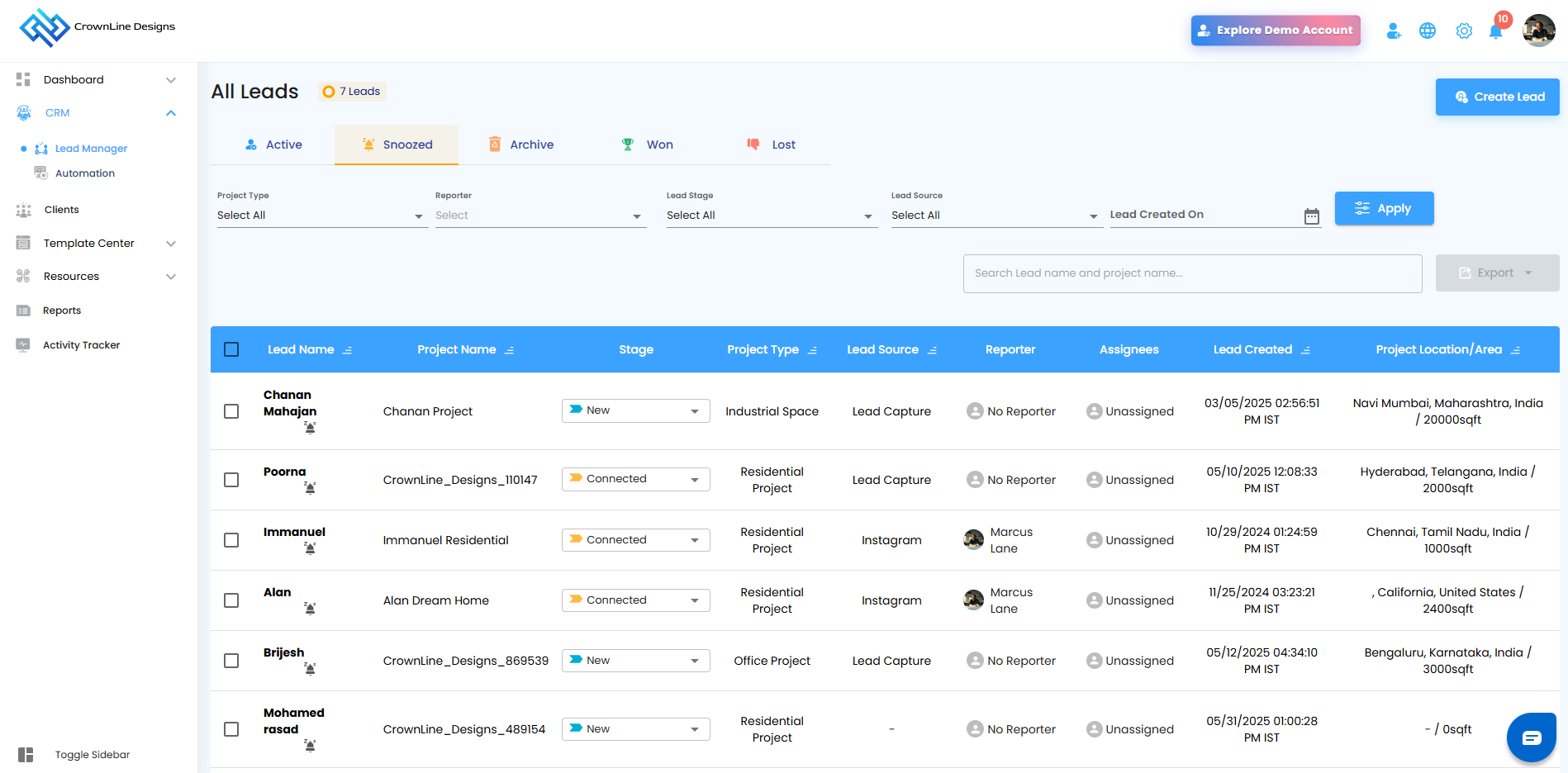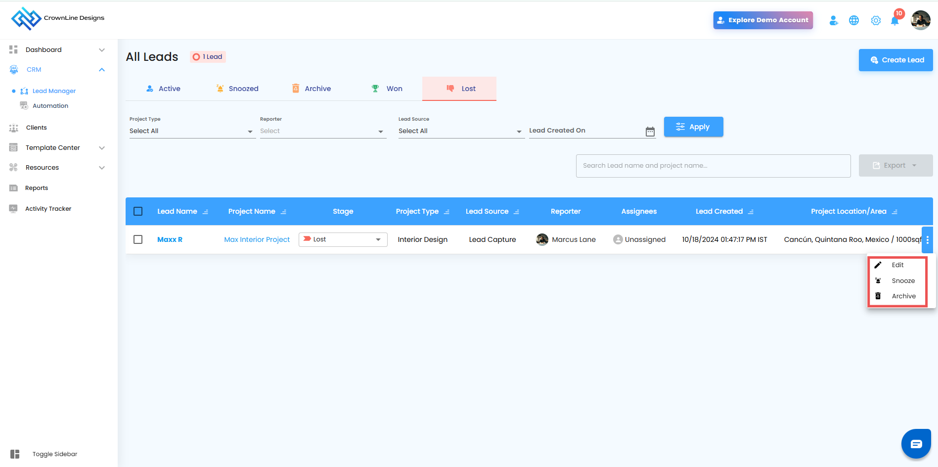 Managing leads effectively is the lifeblood of a thriving business. The Leads section empowers your team to organize, track, and act on potential clients seamlessly. With features like Active, Snoozed, Archived, Won, and Lost, you can monitor the full journey of each lead and ensure nothing falls through the cracks.