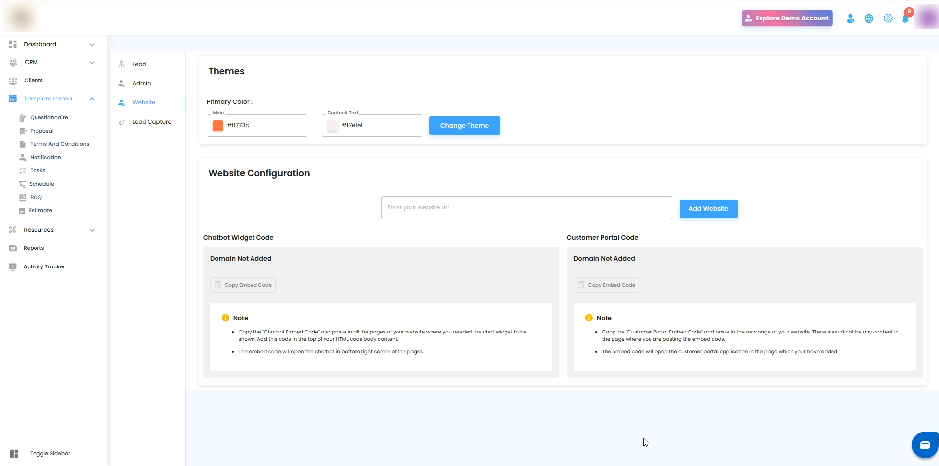 - Scroll down to copy the Embed Code for your Customer Portal.