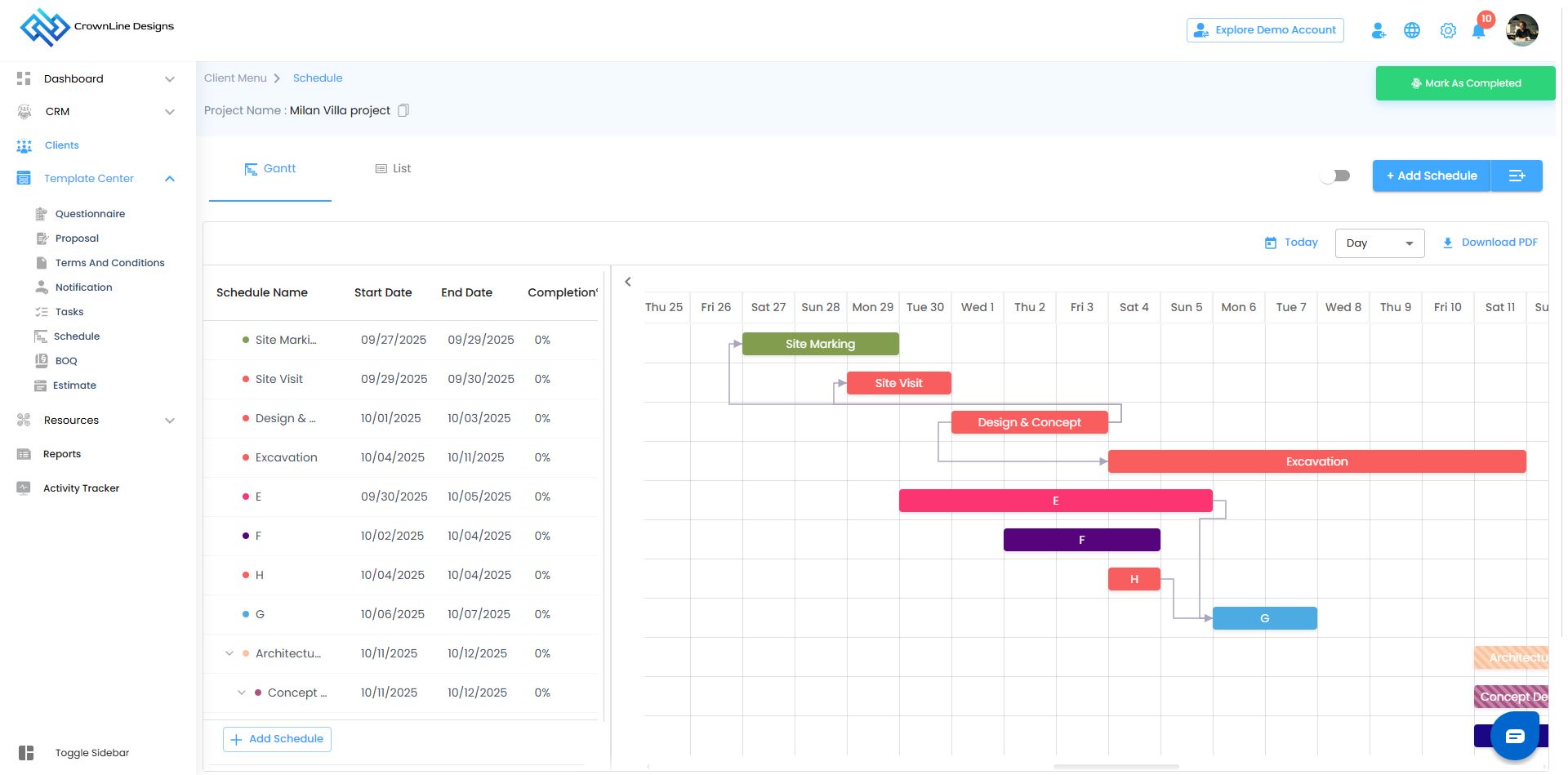 Create, assign, and manage schedules for tasks and milestones.