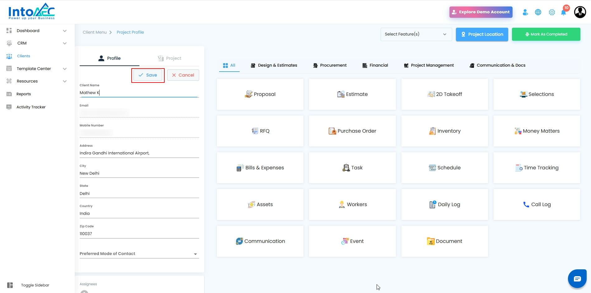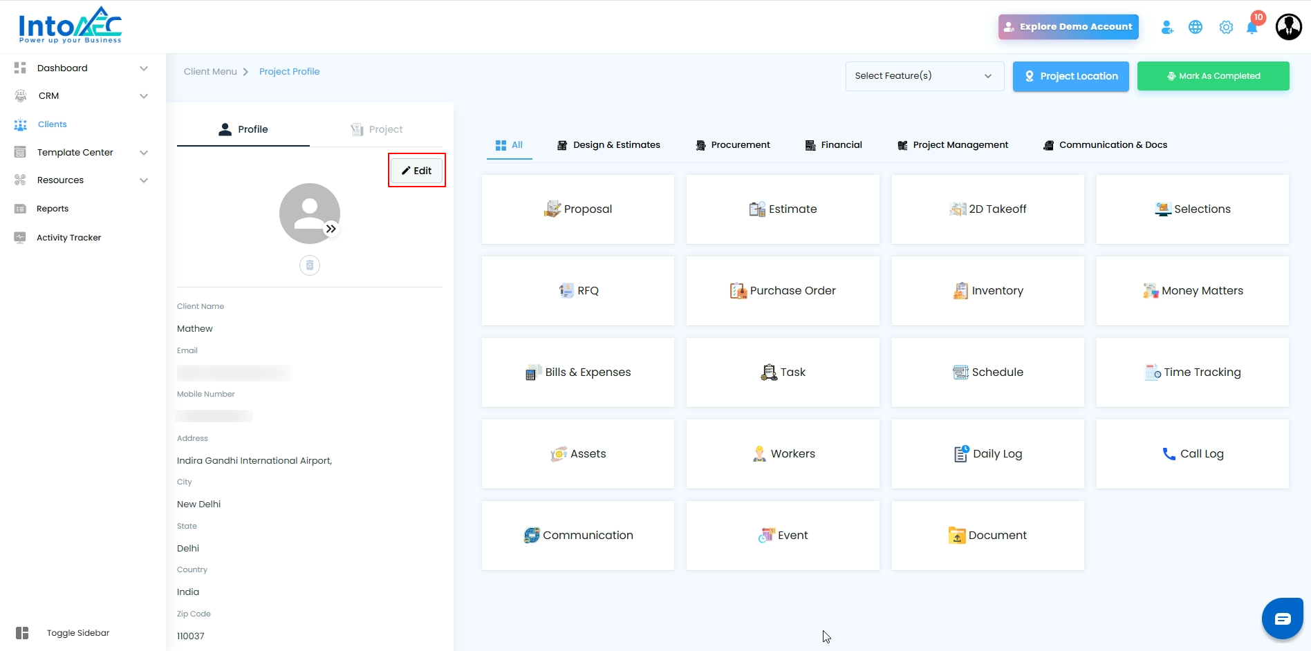 Edit Information → Click Edit to make updates to client details and project information.