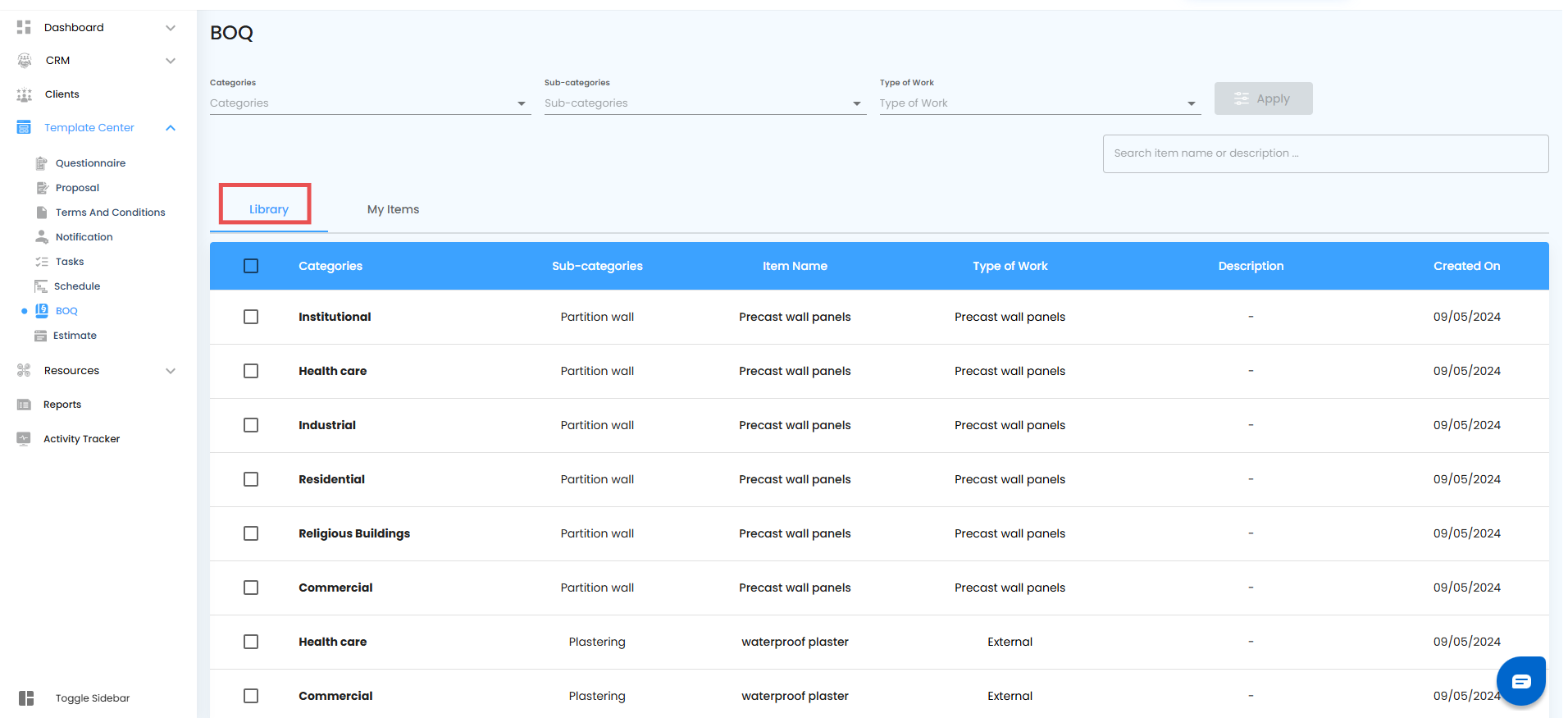 - Library – A repository of pre-defined items curated by IntoAEC, offering a ready-made collection for quick and efficient use.