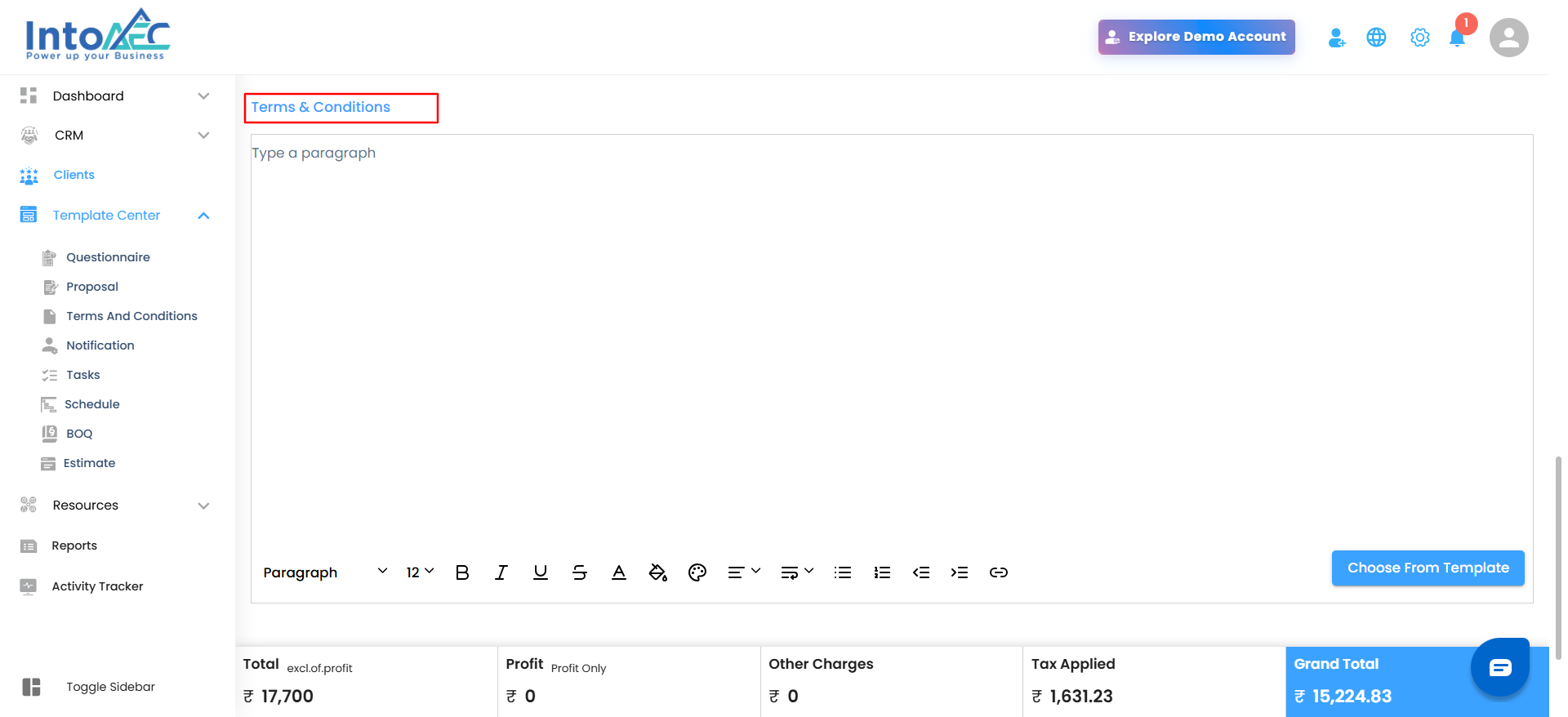 Use the Terms & Conditions field to include important details like payment terms, project scope, or disclaimers. Clear terms prevent confusion later and give your estimate a professional, polished touch.