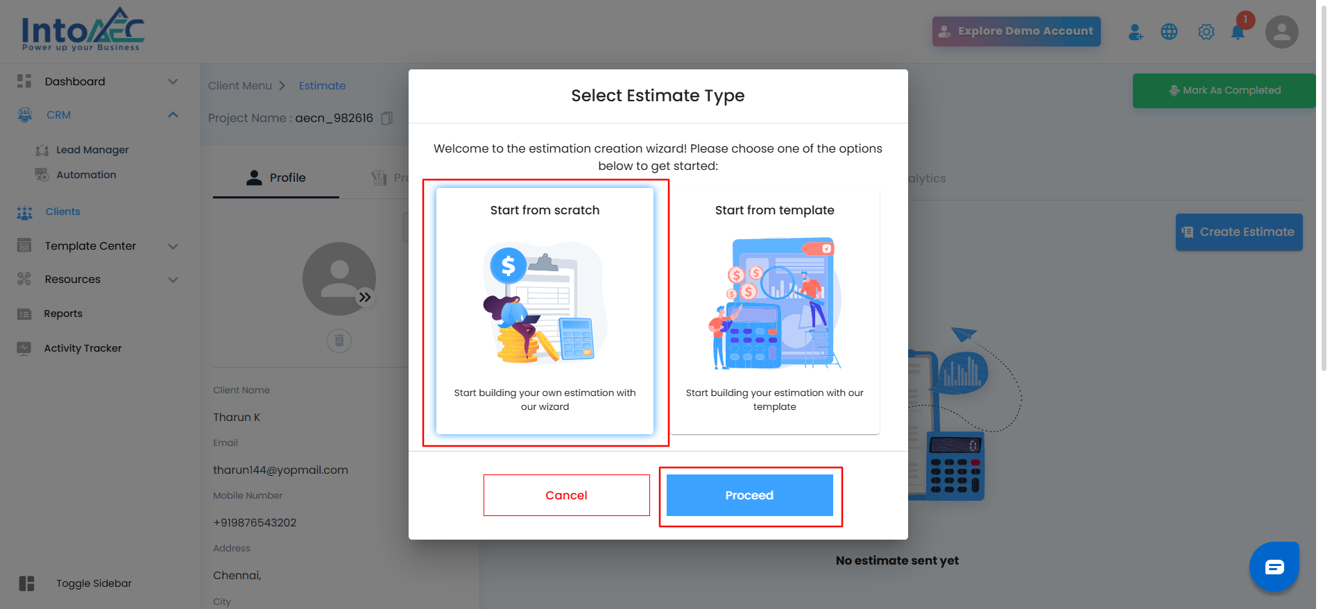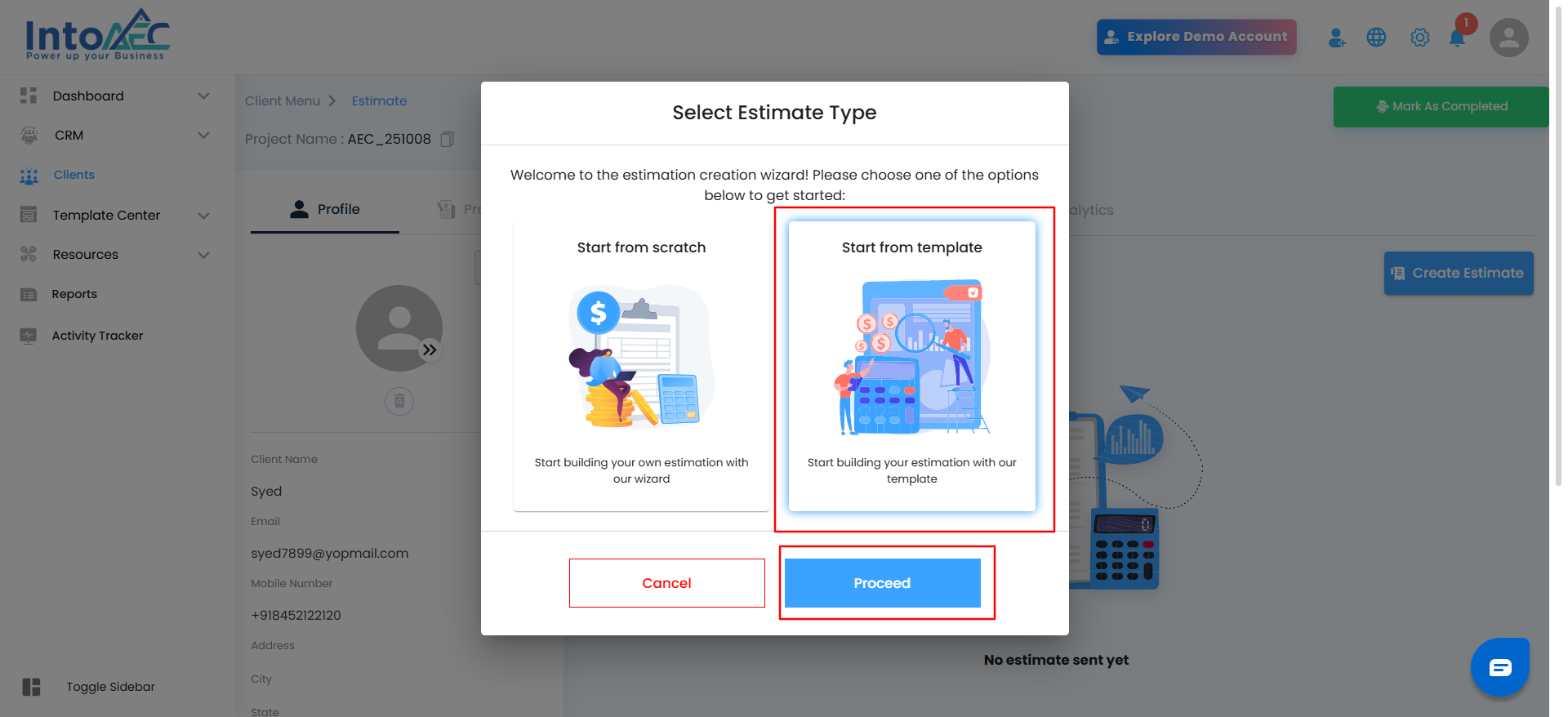 Step 1: Choose the estimate type as Start from Template and click Proceed.