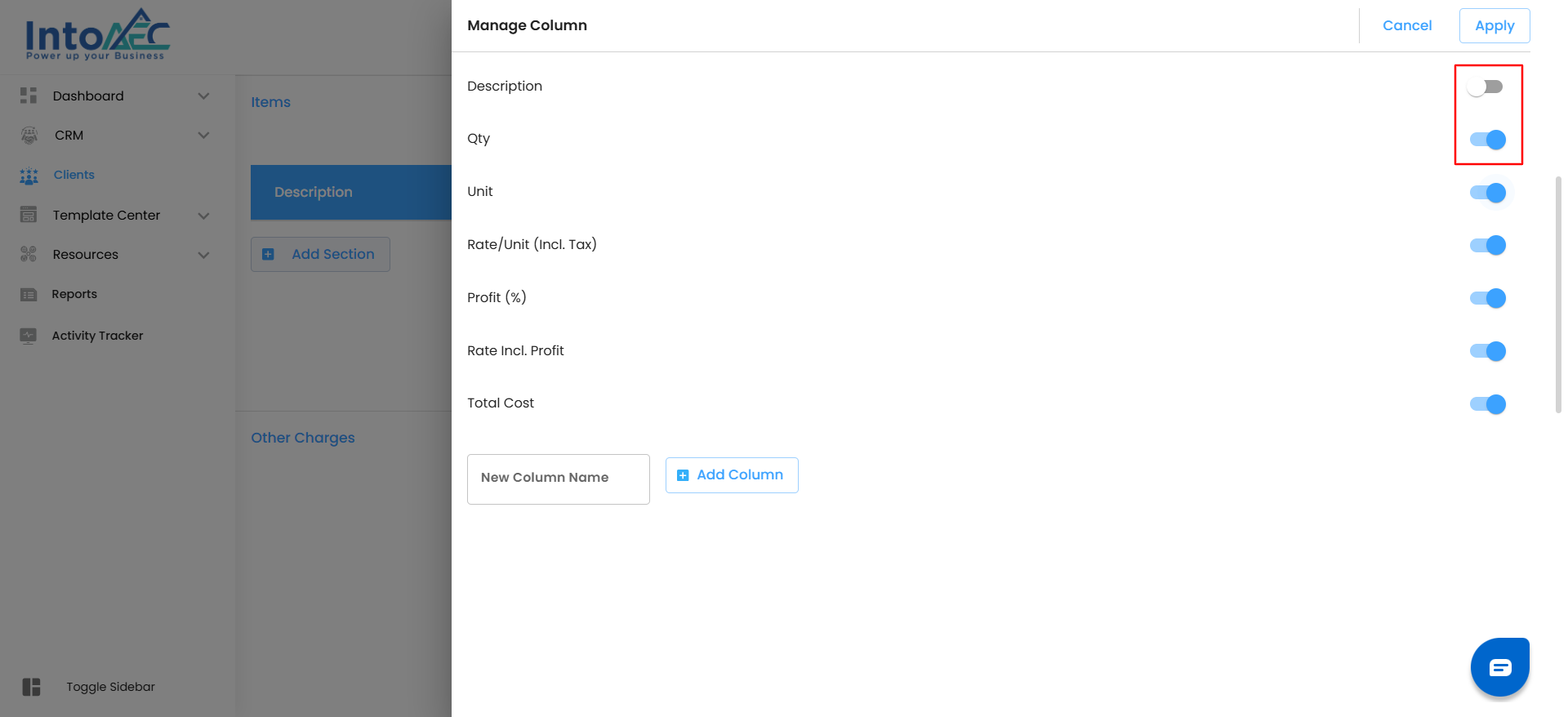 You can easily customize the columns displayed in your item table to focus only on the details you need. This helps you tailor your view—whether you want to simplify your layout or see all pricing details at once.