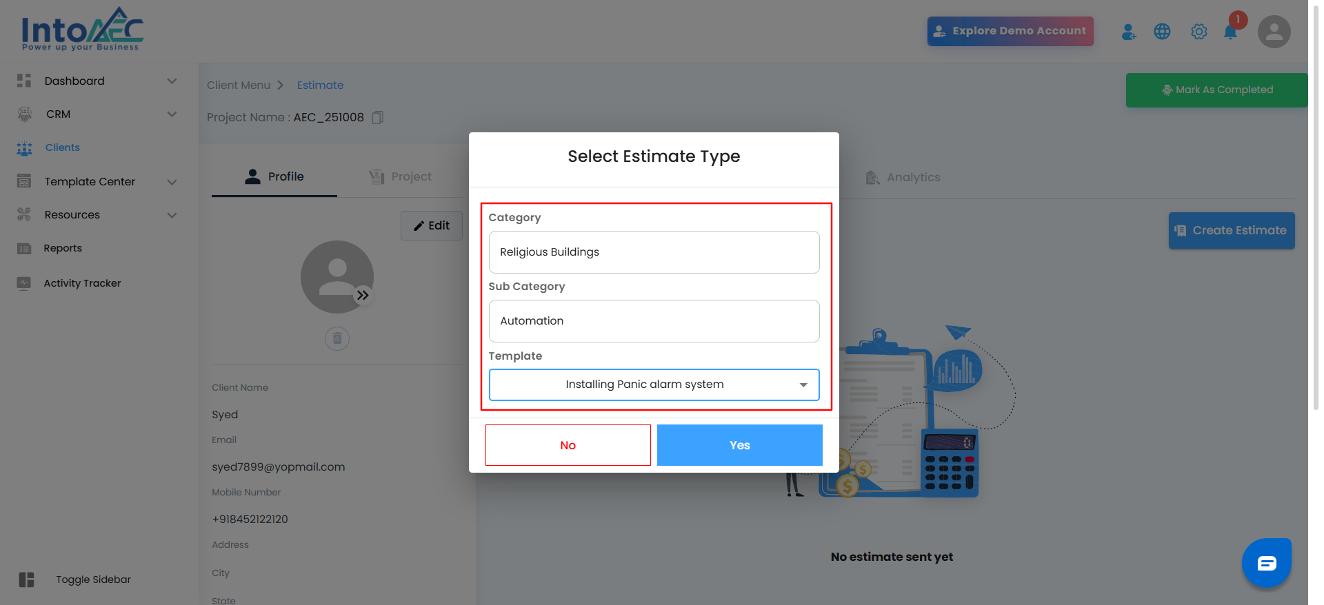 The estimate will be instantly shared with your client, and a confirmation will appear on your screen.