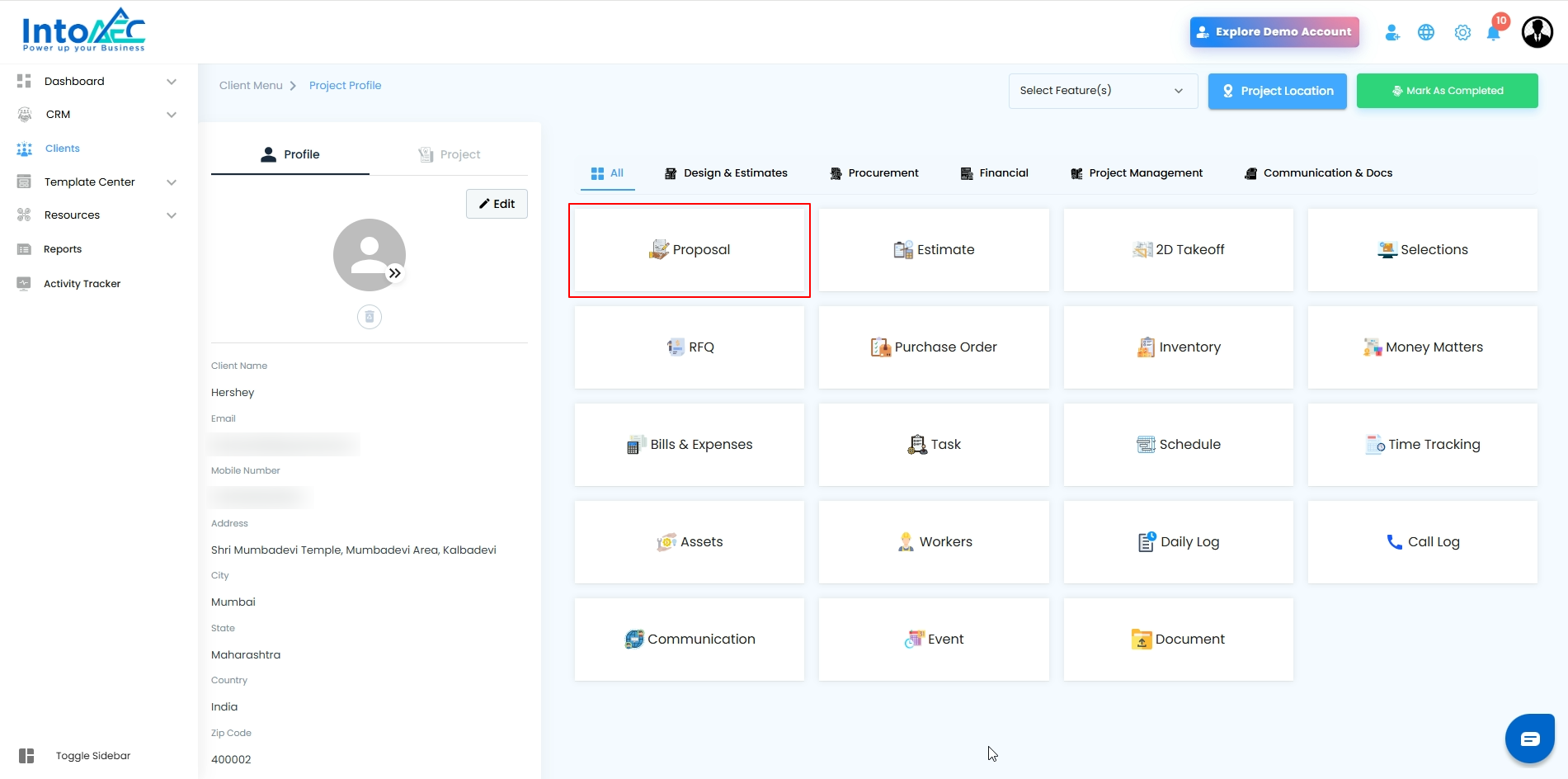 - Click on Proposal to view the proposals associated with that client.