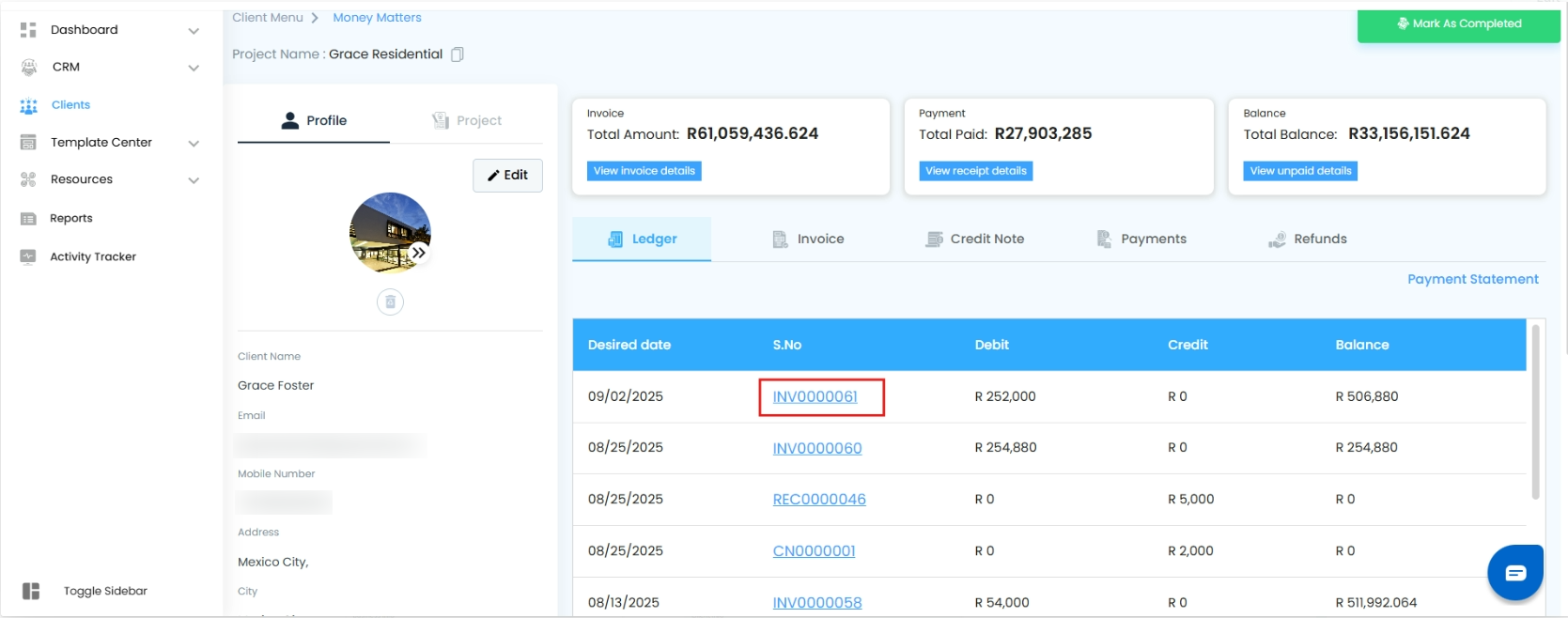 It’s like having a bank statement — but smarter, focused only on your client’s project and transactions.