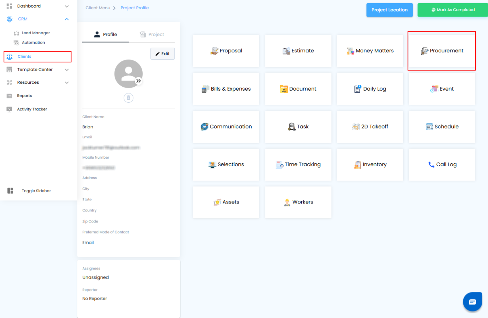 Make sure you select the correct client to avoid mixing up orders and keep your procurement records accurate.