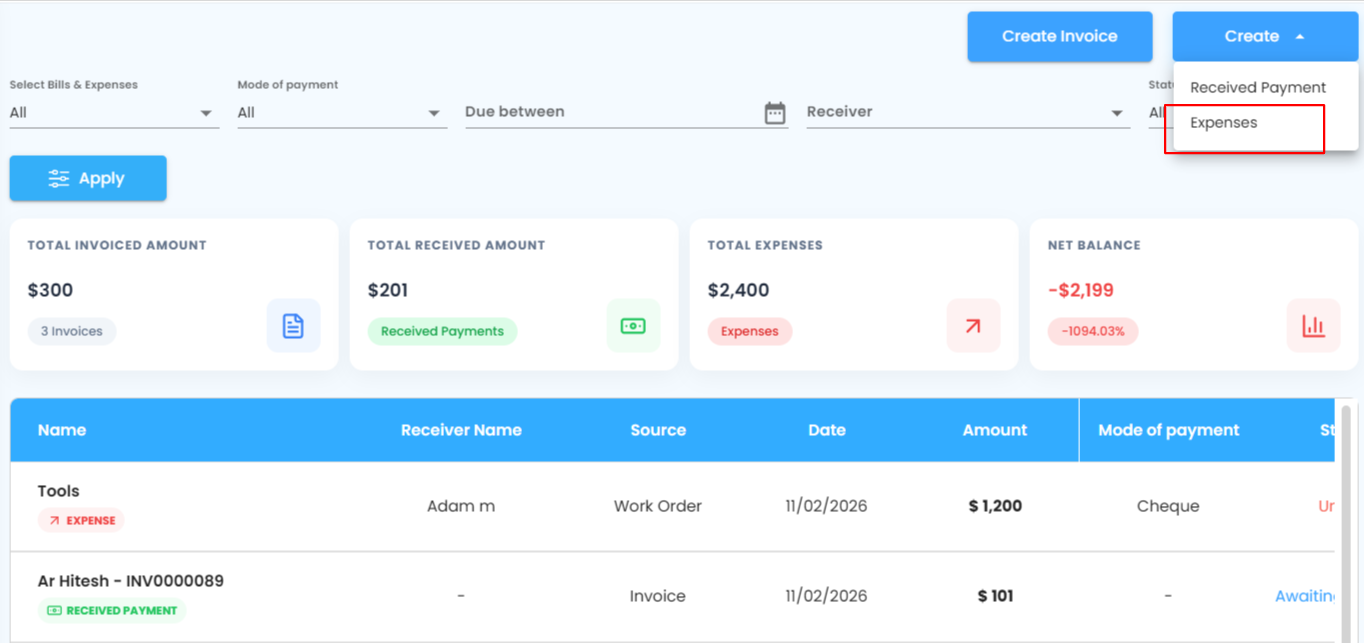 Think of the Expenses section as your financial diary — every bill, every payment, every little detail neatly logged. It’s the place where you turn day-to-day spending into clear, trackable records.