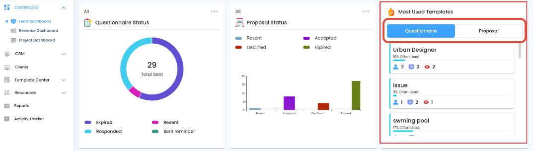 Questionnaire Templates: See which questionnaires are most frequently utilized, enabling you to replicate effective templates.