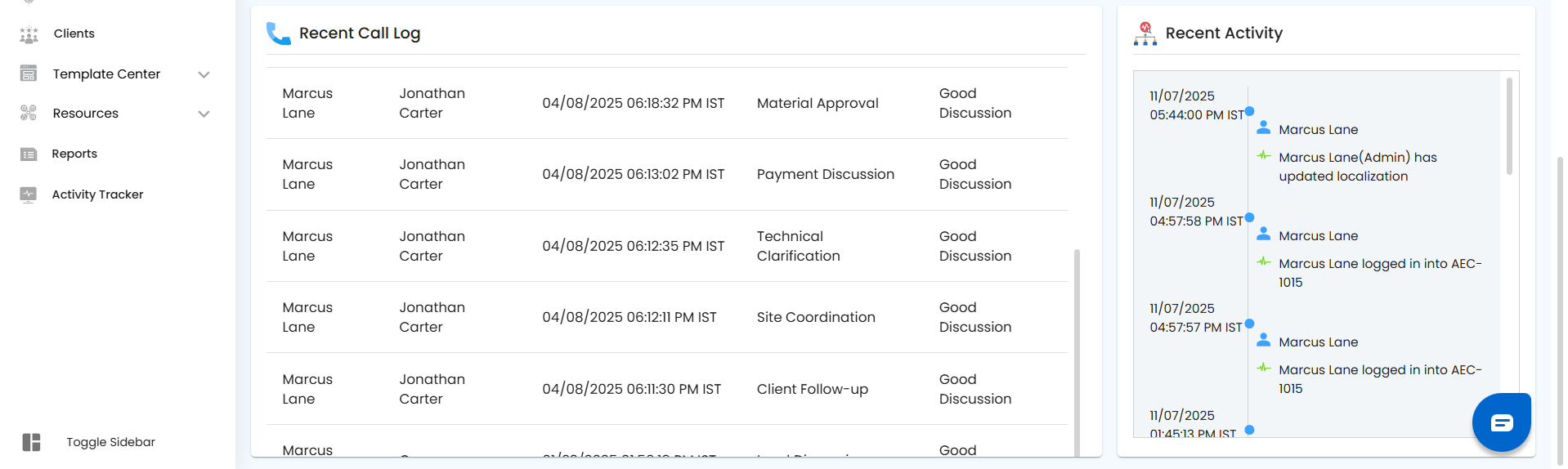 Quickly access all recent call activities. This card keeps your team informed and ensures that client communications are tracked efficiently.