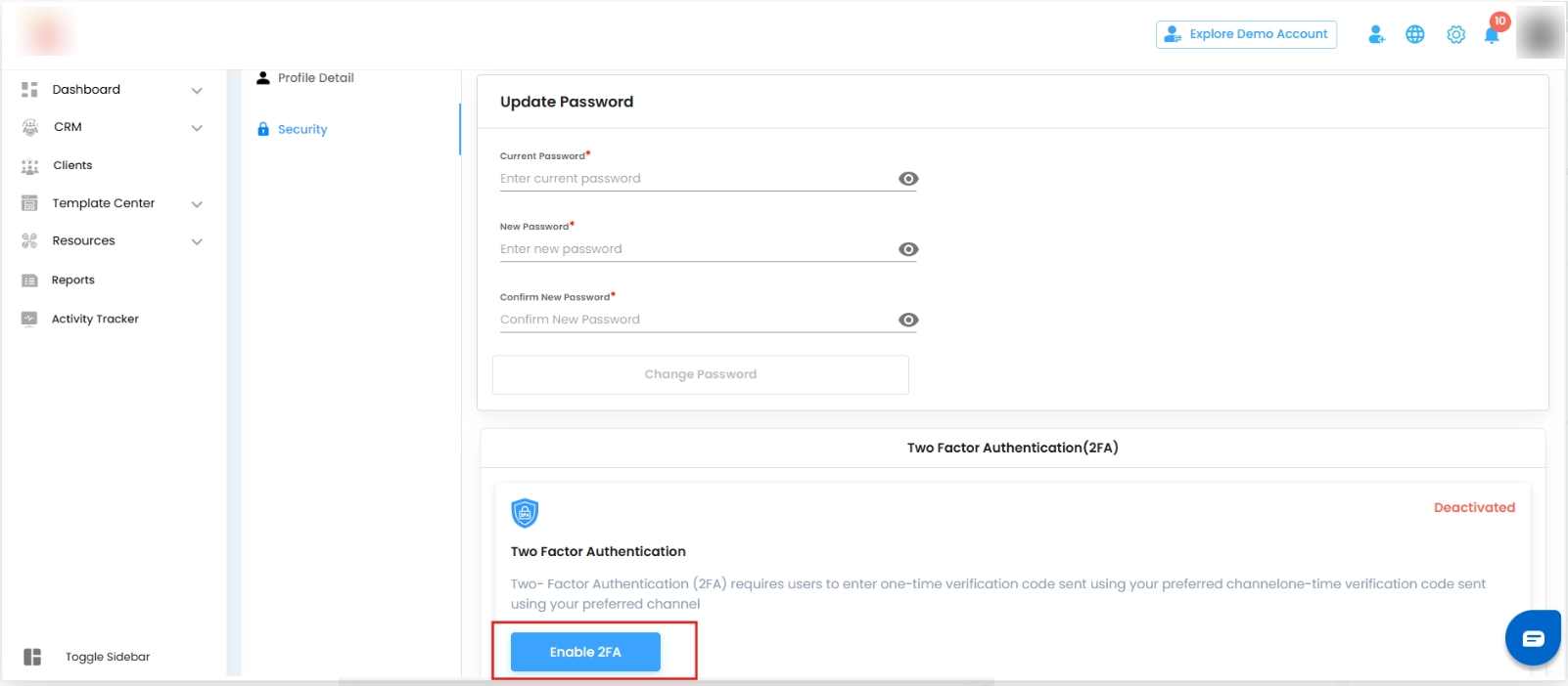 Click the Enable 2FA button.