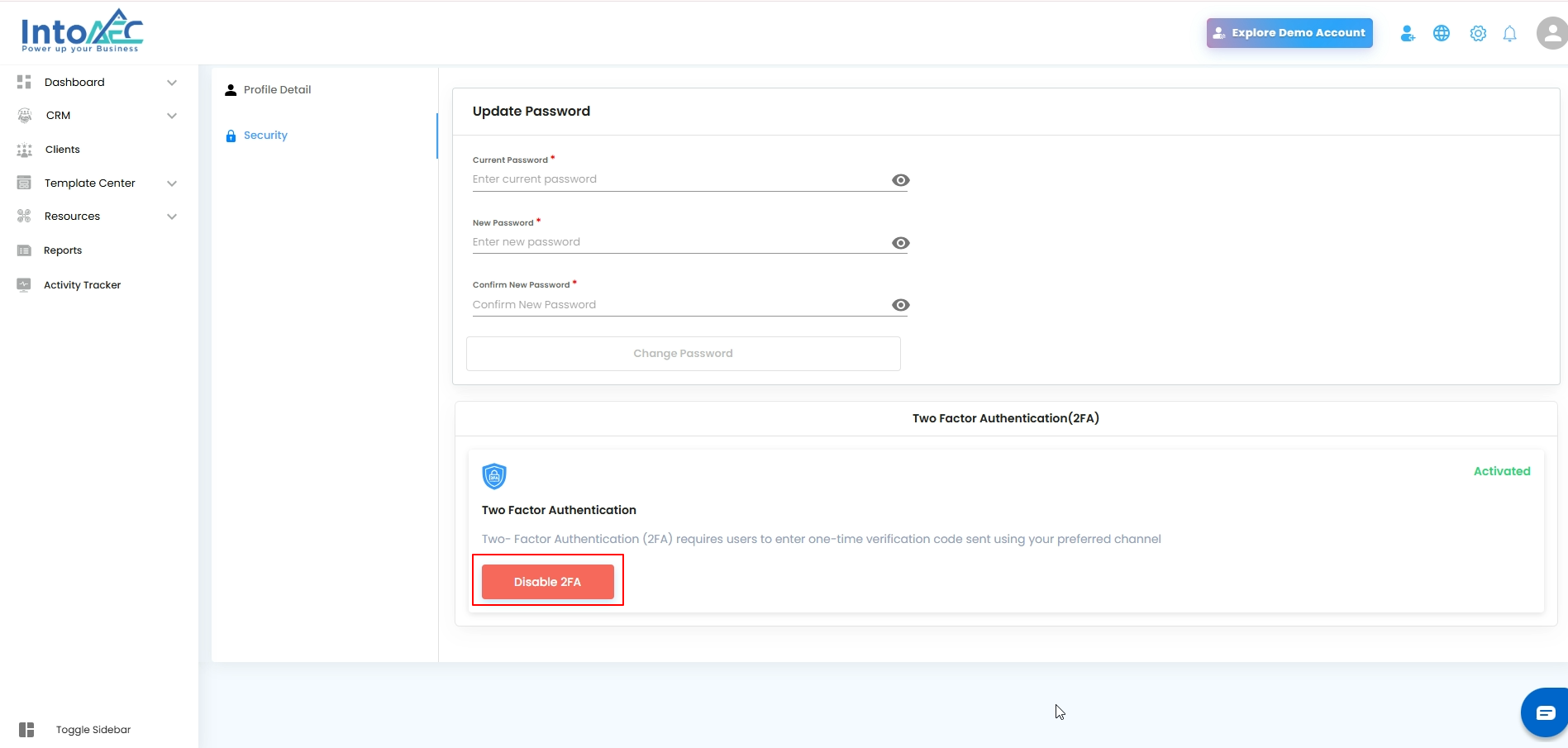 Click Disable 2FA