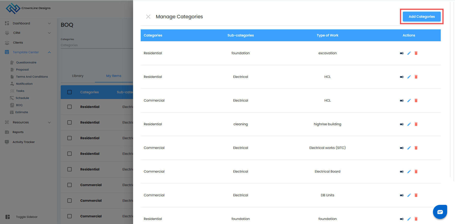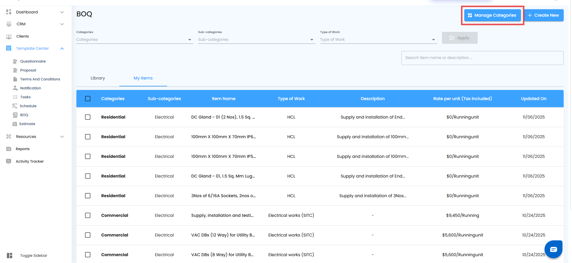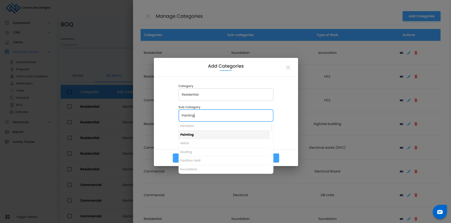 - Easily add new categories to keep your BoQ organized and aligned with your project requirements.