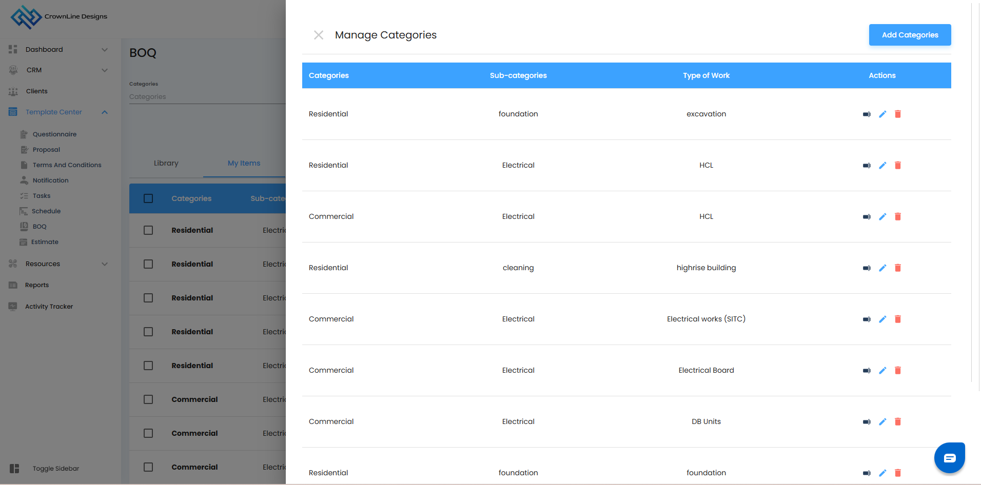 Easily manage categories to ensure your BoQ stays structured and adaptable to changing project needs.