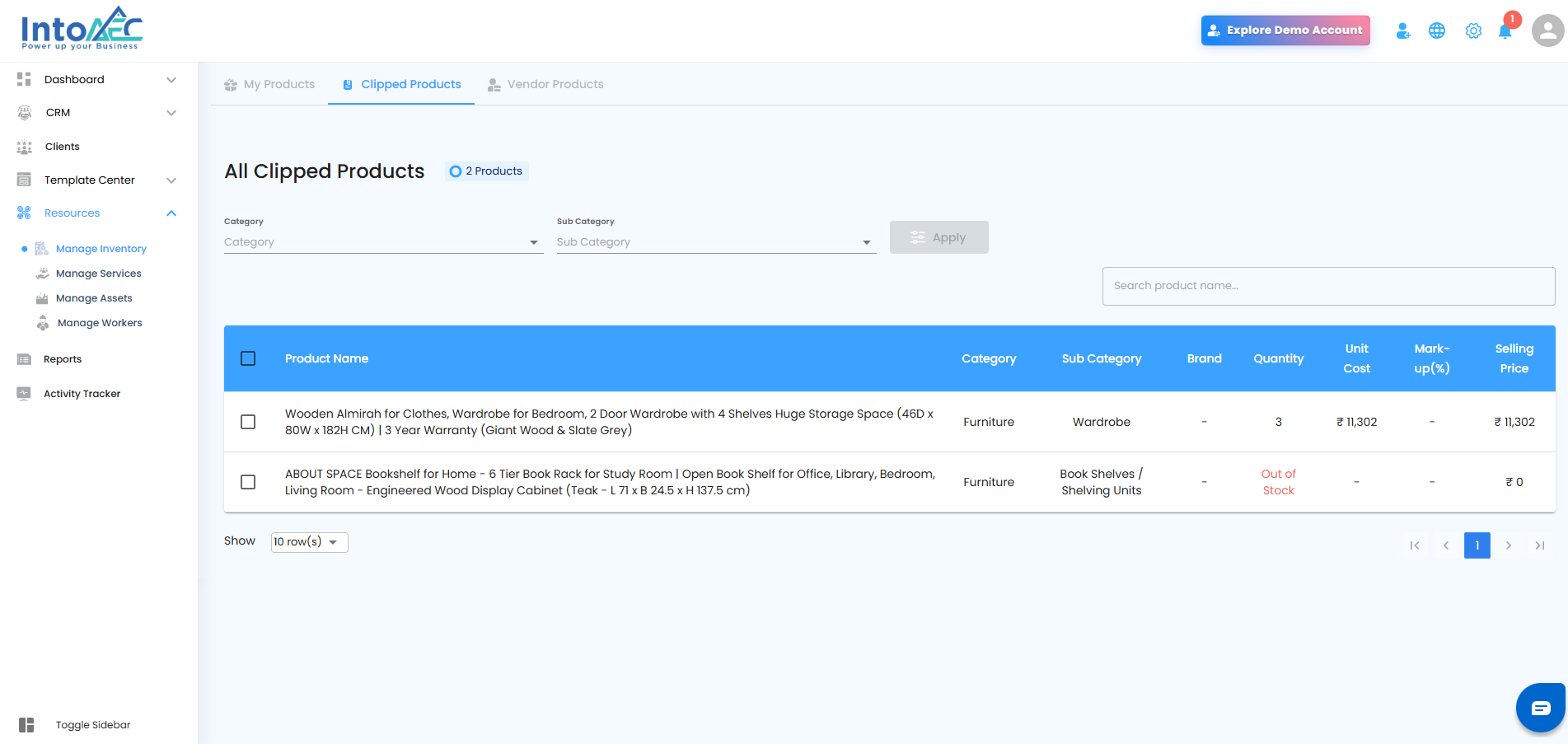 The IntoAEC Product Clipper lets you capture and save product details directly from any website into your Manage Inventory section. This tool helps you quickly build your product library without manual entry.