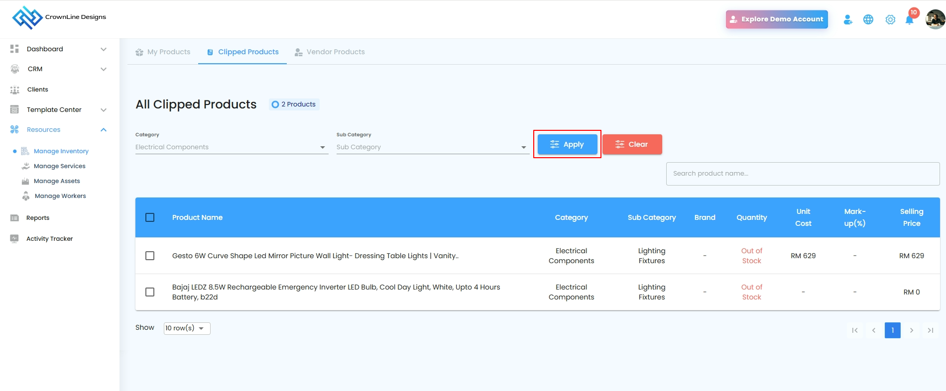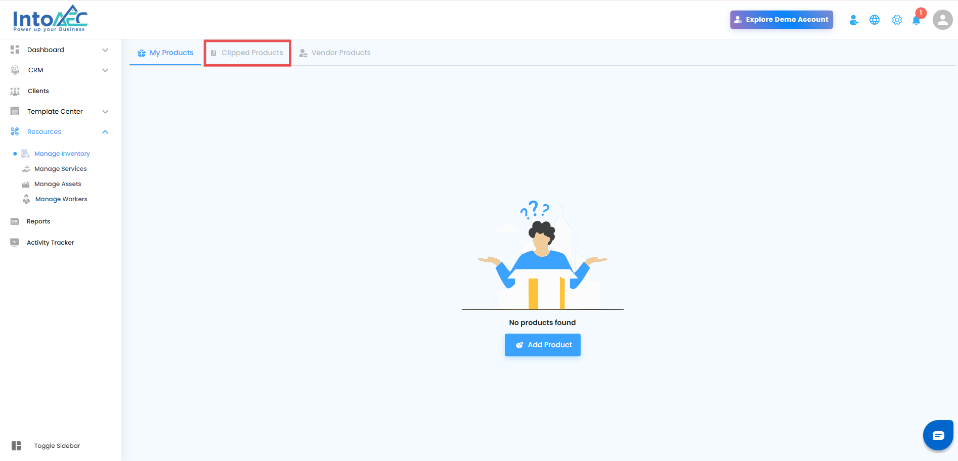Navigate to Resources → Manage Inventory → Clipped Products.