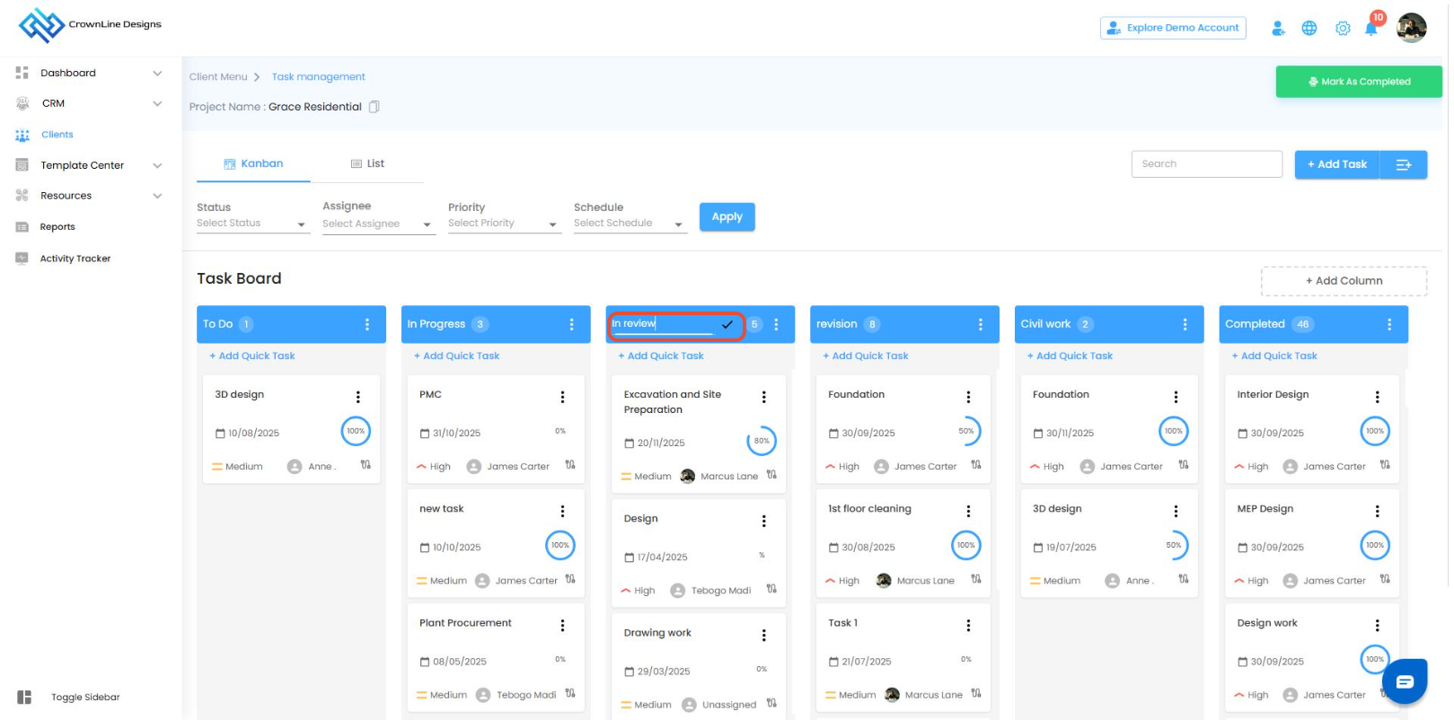 Add / Edit Task Status – You can also customize the status title by editing it to match your workflow preferences.
