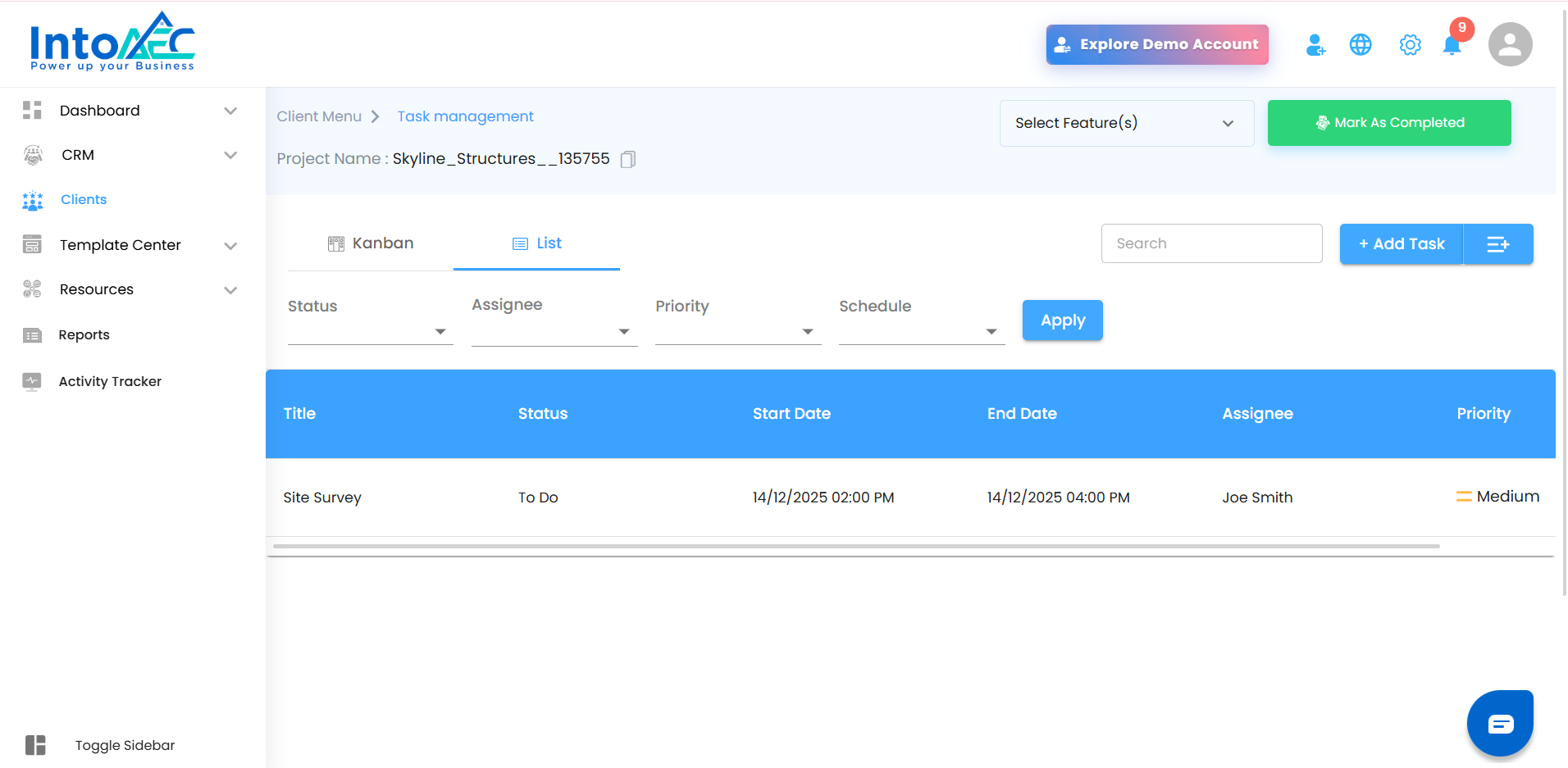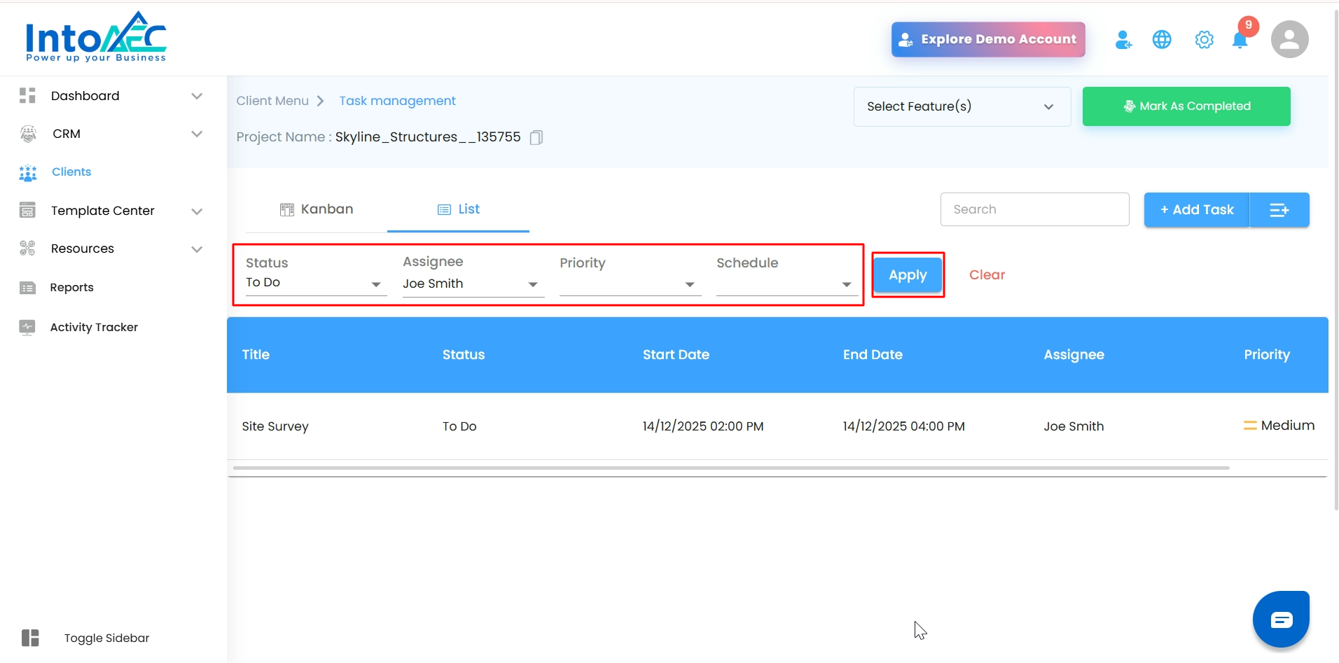 Filter tasks to see only what’s relevant (by status, assignee, or priority).