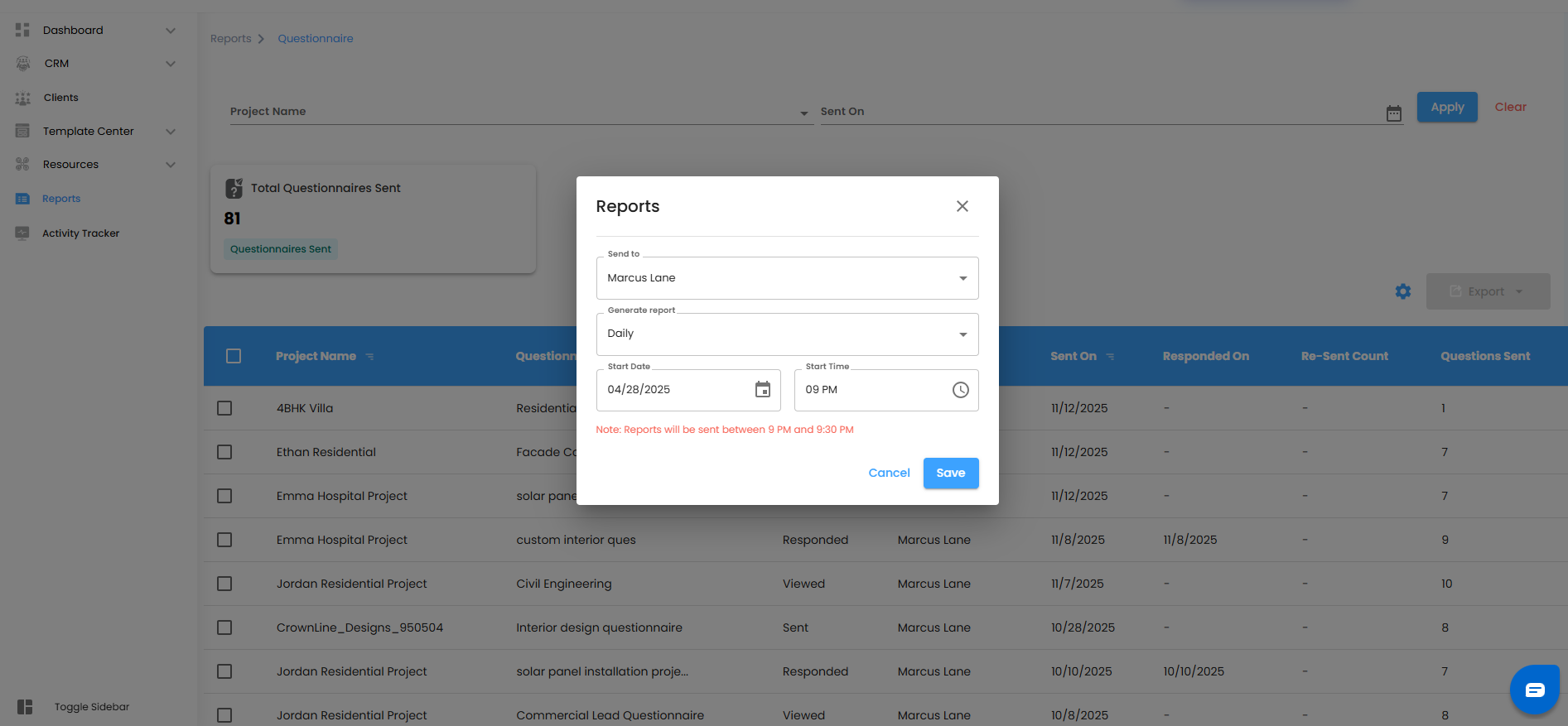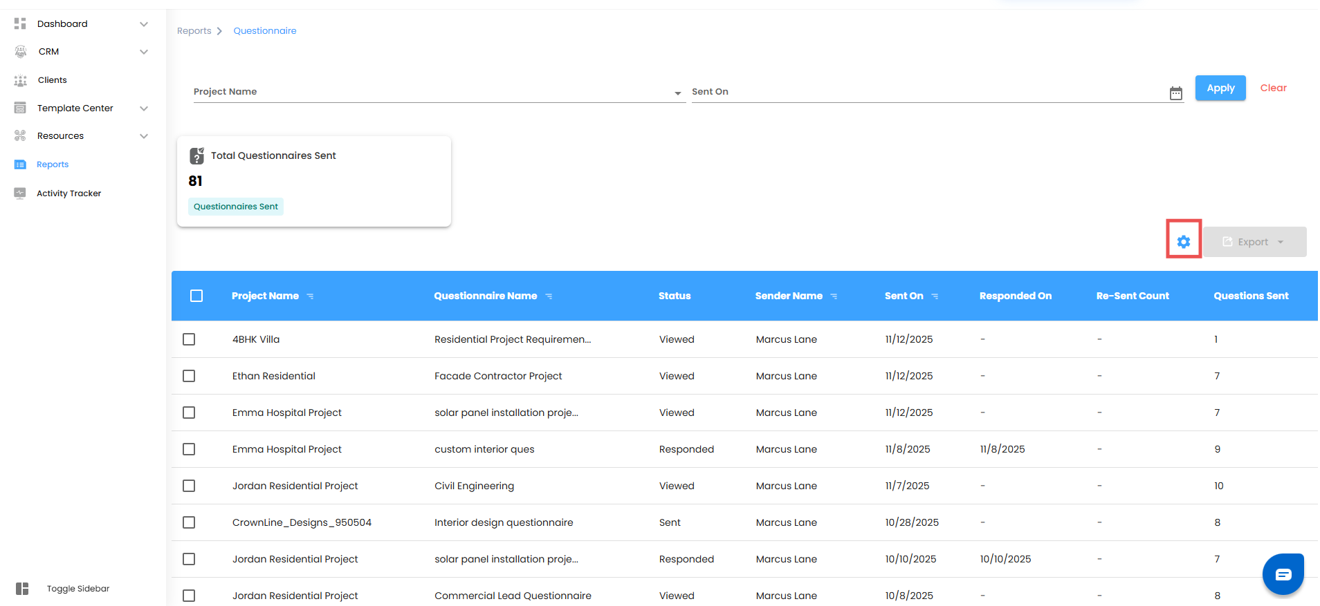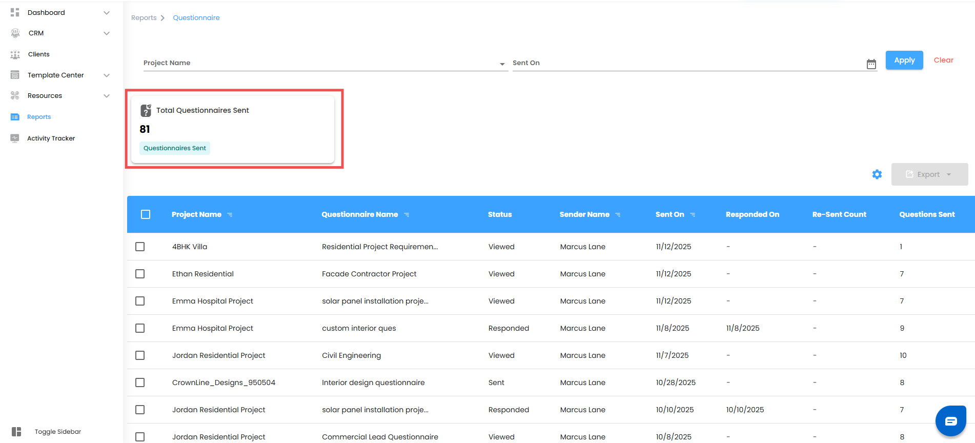 Pro Tip: Regularly review the Questionnaire Report to identify pending responses—quick follow-ups can significantly improve client engagement and completion rates.