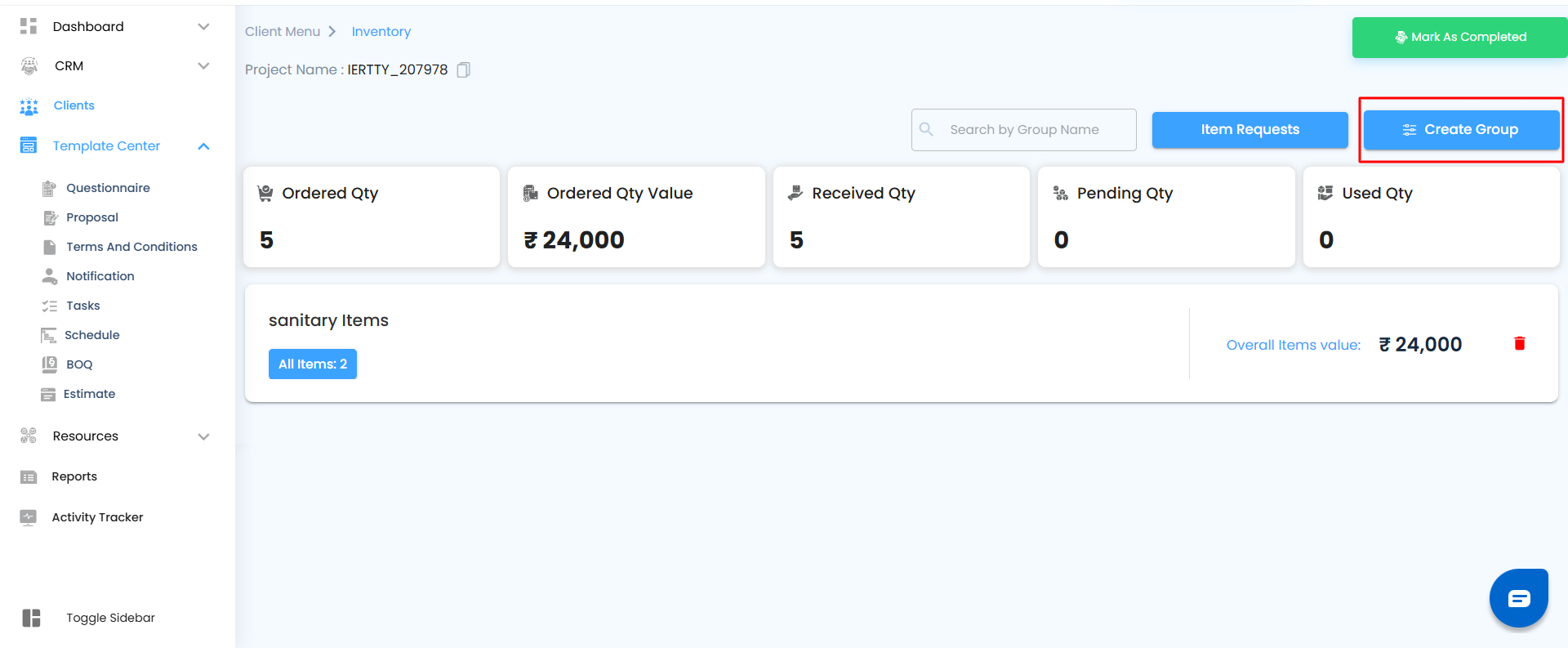 - On the Inventory Page, find the Create Group button (usually at the top or near the groups section).