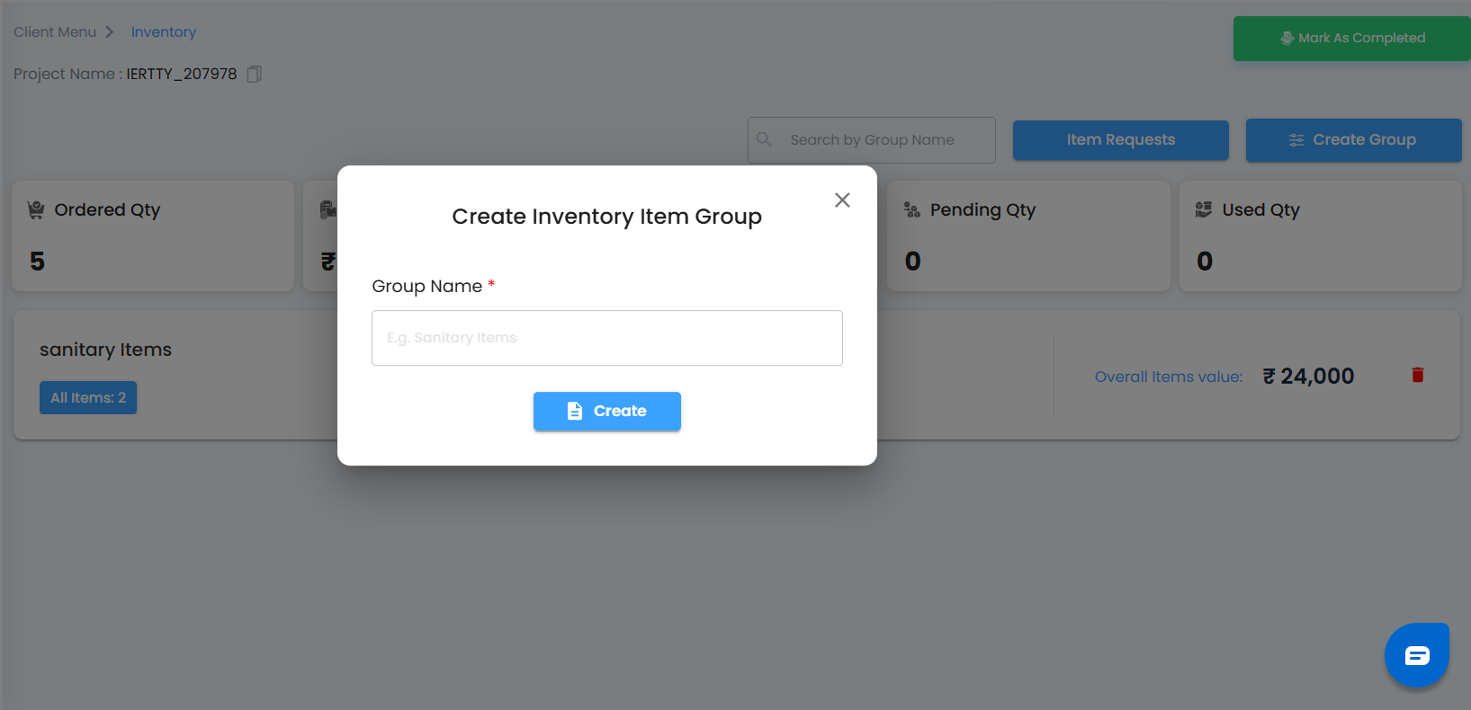 - In the popup, type a meaningful group name, like “Electrical Materials – Site A” or “Concrete Supplies – Project 3.”