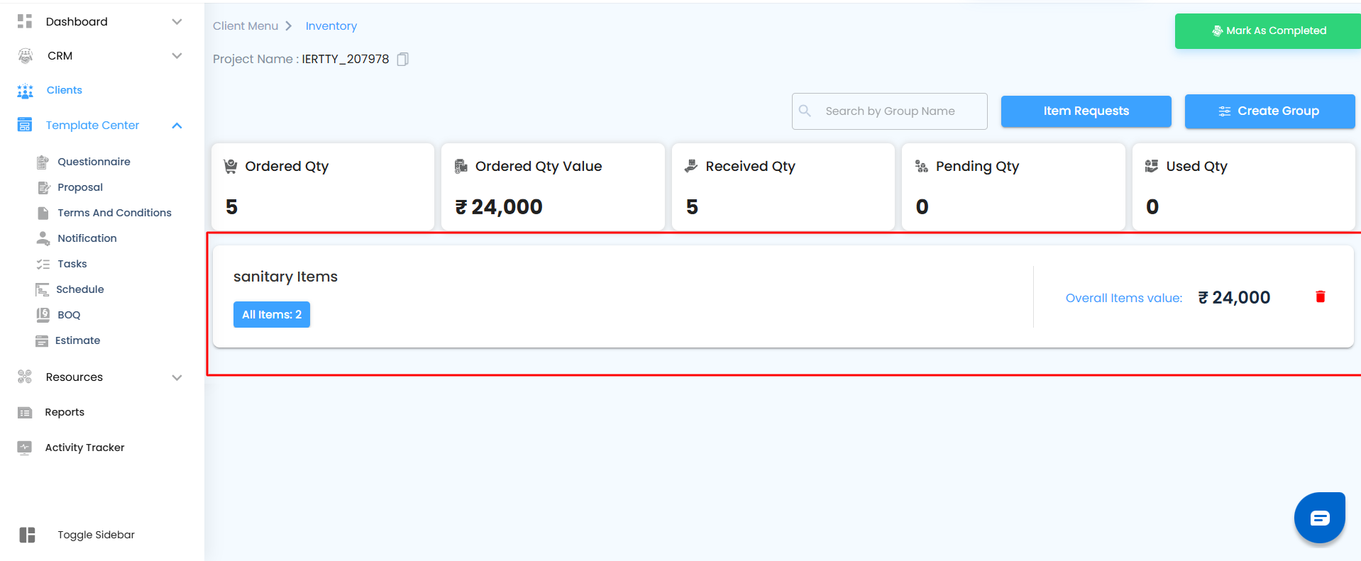 With INTOAEC’s Inventory Page, you can streamline material management by creating groups tailored to your project needs. Groups act like smart folders—each one gives you a quick overview of all items inside and their total value, so you can stay in control without scrolling through endless lists.