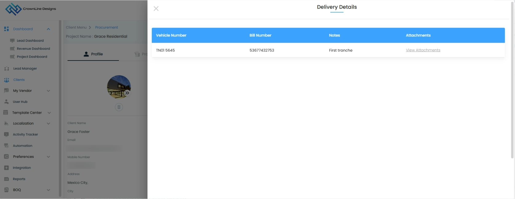 You can both view and download delivery details directly from this panel, keeping your records organized and accessible whenever needed.