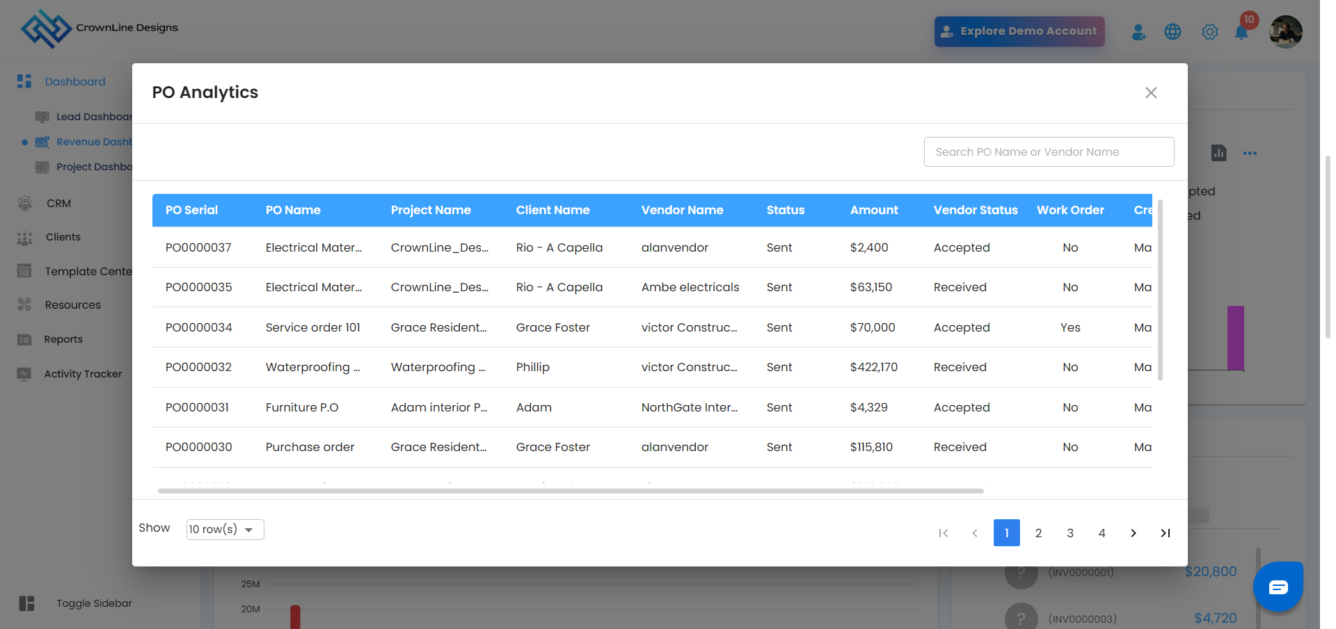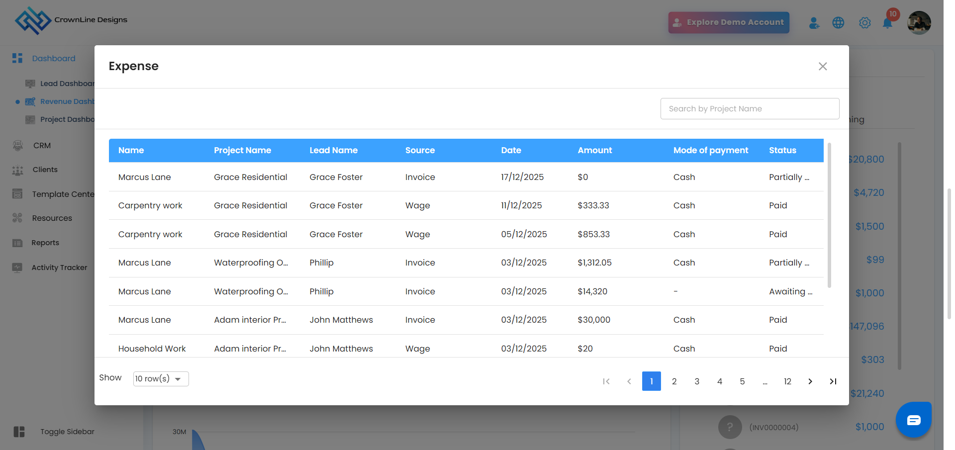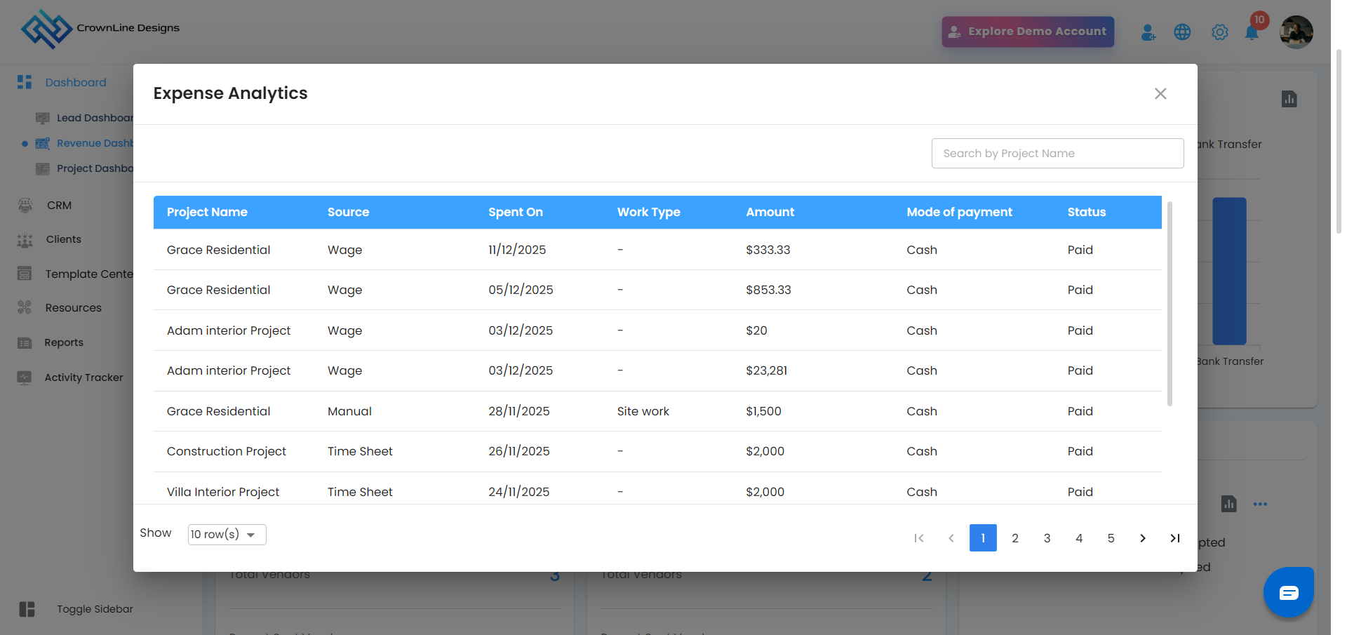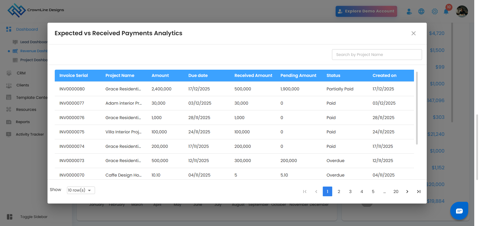 The Revenue Dashboard in the IntoAEC application is your financial control tower. From one place, you can monitor revenue performance, project statuses, client conversions, invoices, expenses, and profits — all tied together with interactive visuals and smart insights.
