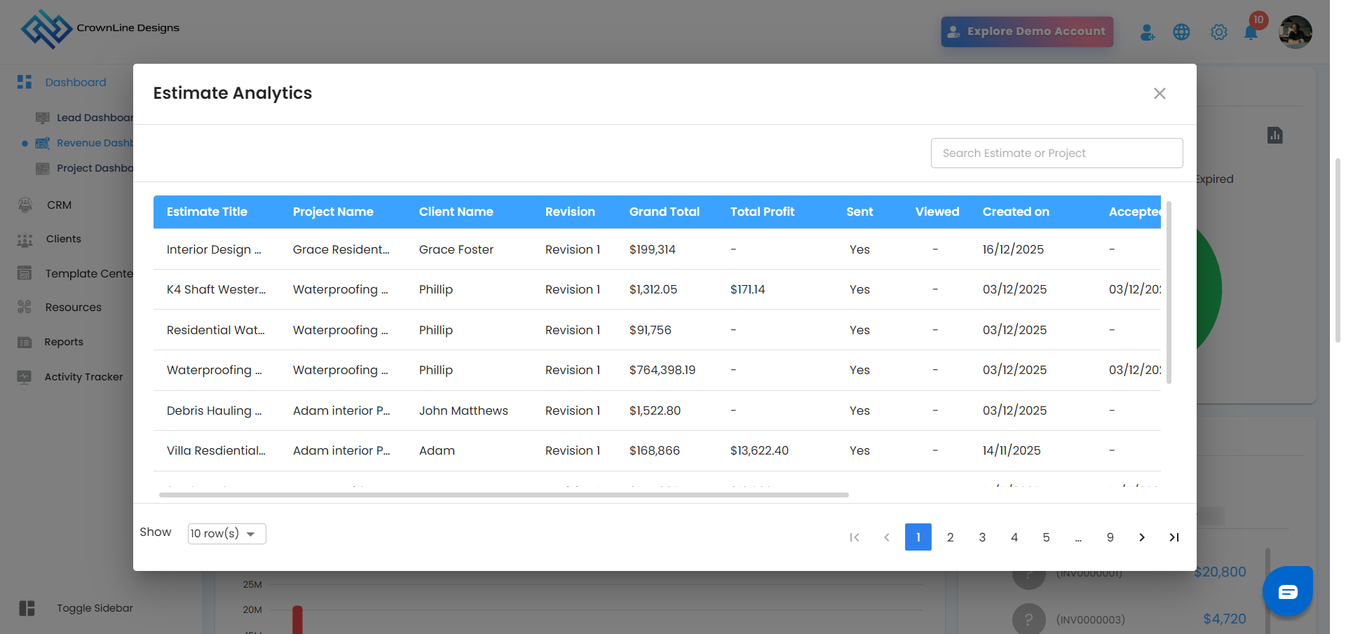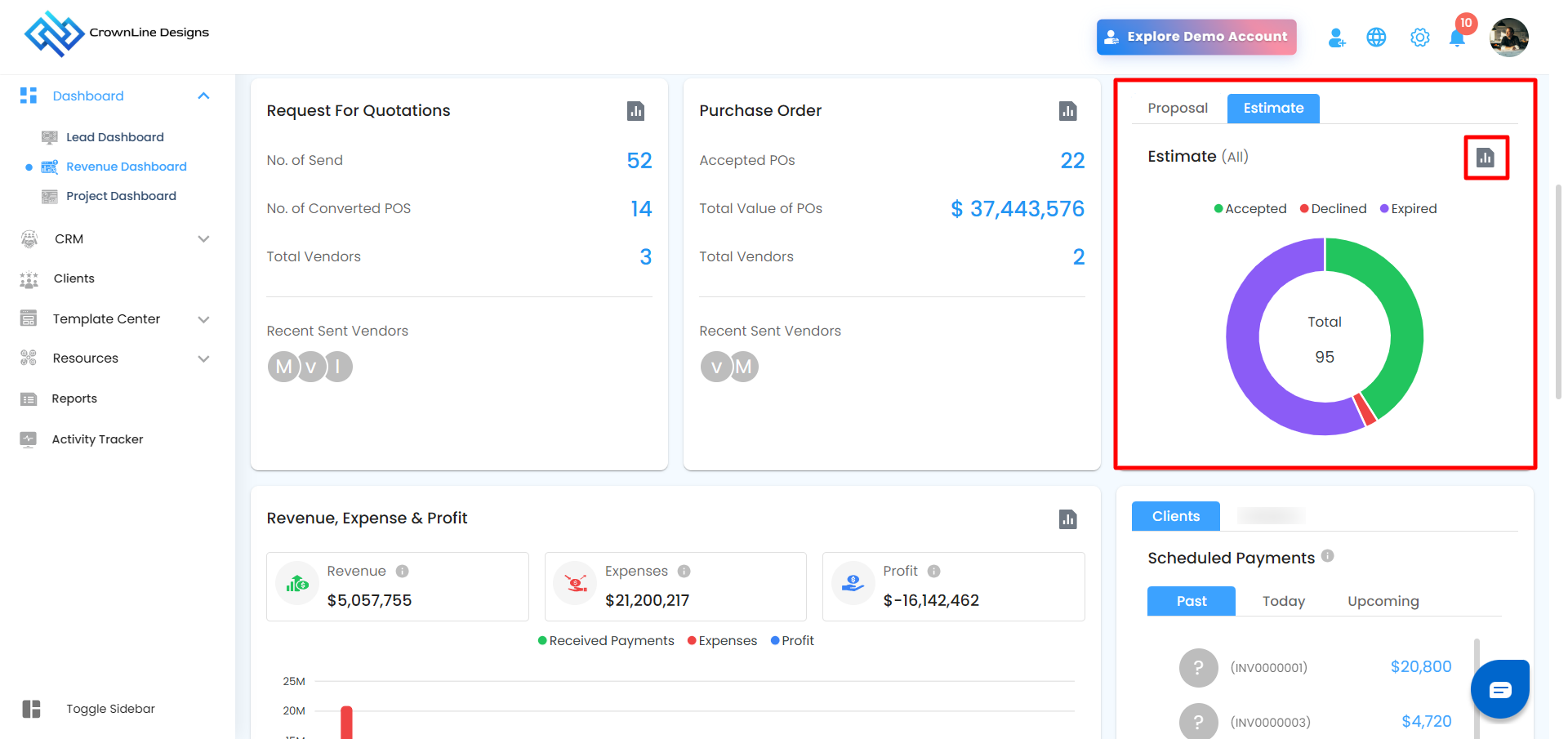 Quick Access to EstimatesClicking Estimate Count or Estimated Revenue redirects to: