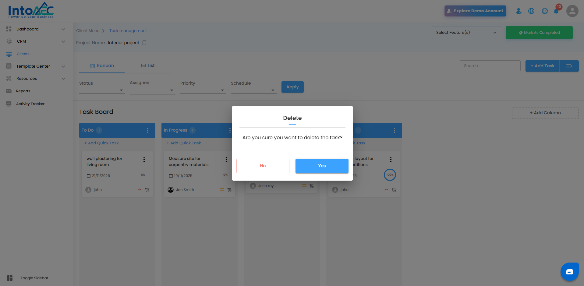 Yes, Delete – The task vanishes instantly from the board, keeping your workspace sharp and focused.