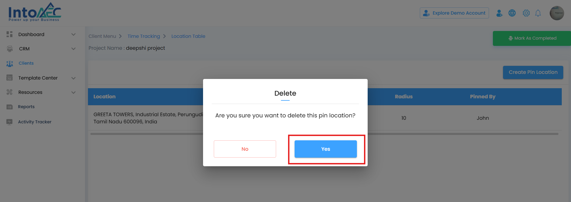 "Are you sure you want to delete this pin location?"Click Yes to proceed and permanently remove the location.