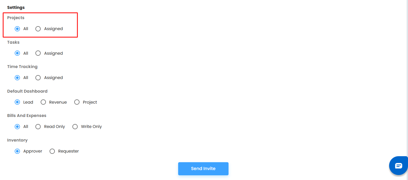 - Assigned – Restricts access to only the projects specifically assigned to the user.