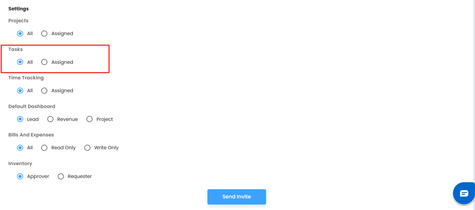 - Enable or Disable Time Tracking: Decide if the user should log hours for tasks.