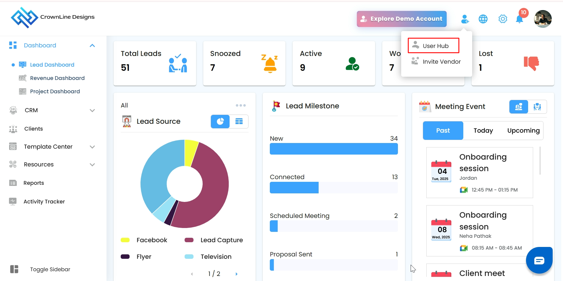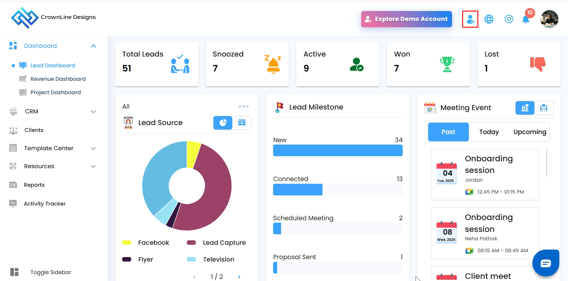 - Lead Dashboard – Focuses on leads, prospects, and sales opportunities.