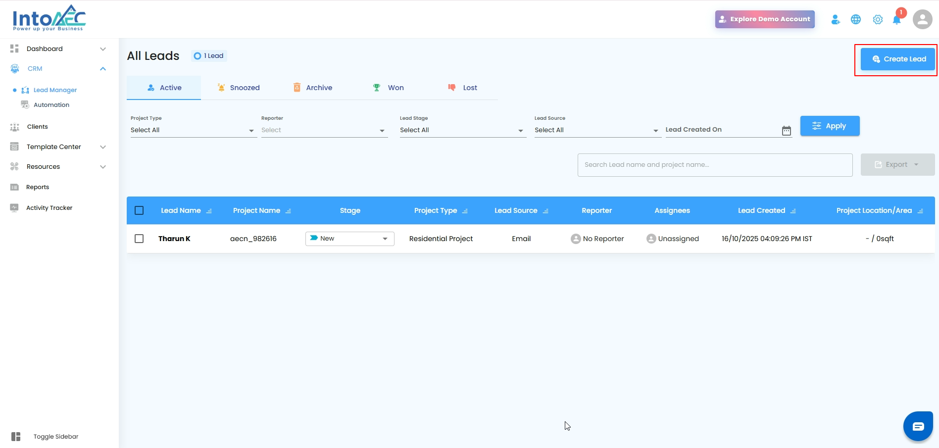 After filling all necessary information and selecting the assignees, click the create lead button to create the lead.