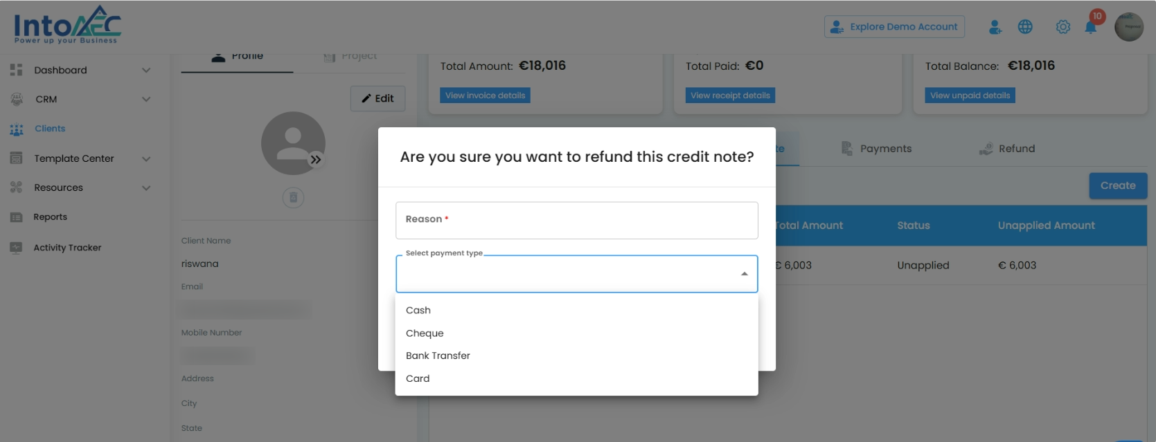 “Are you sure you want to refund this credit note?”Fill in the following: