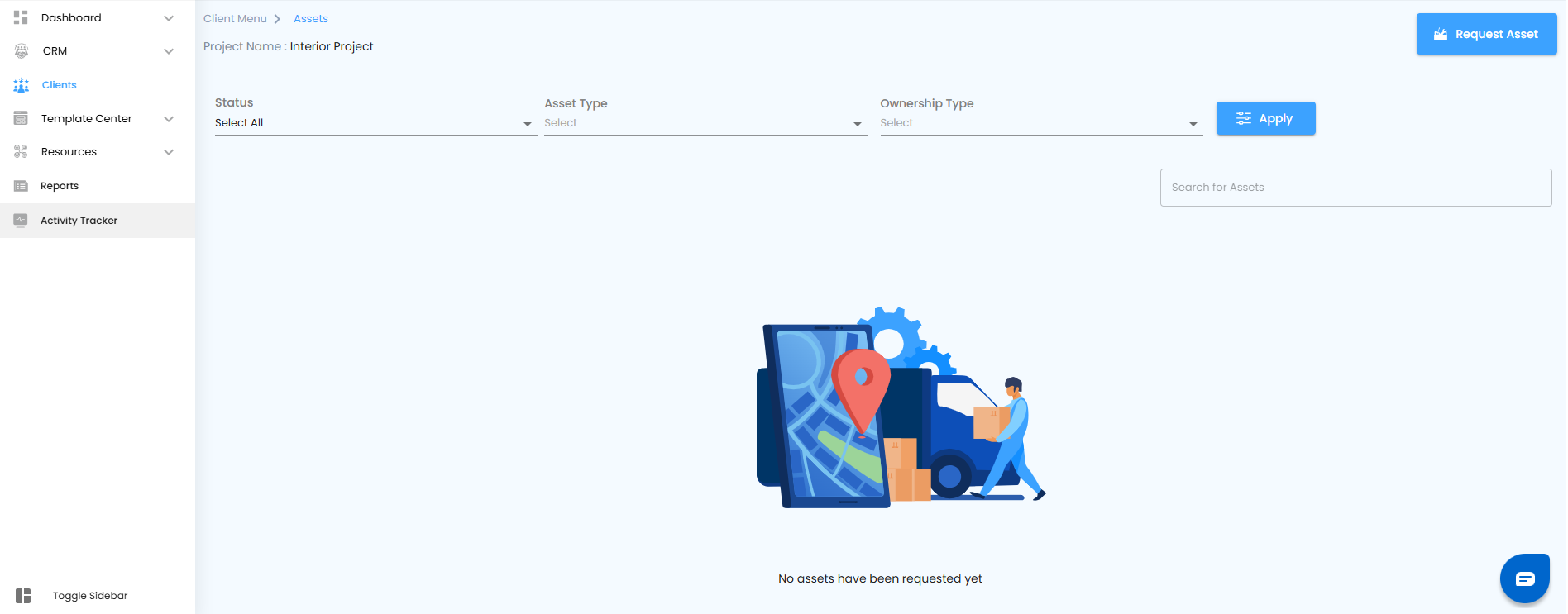 If no requests yet → A friendly illustration will appear with the message “No Assets Have Been Requested Yet”—a gentle reminder to make your first request.