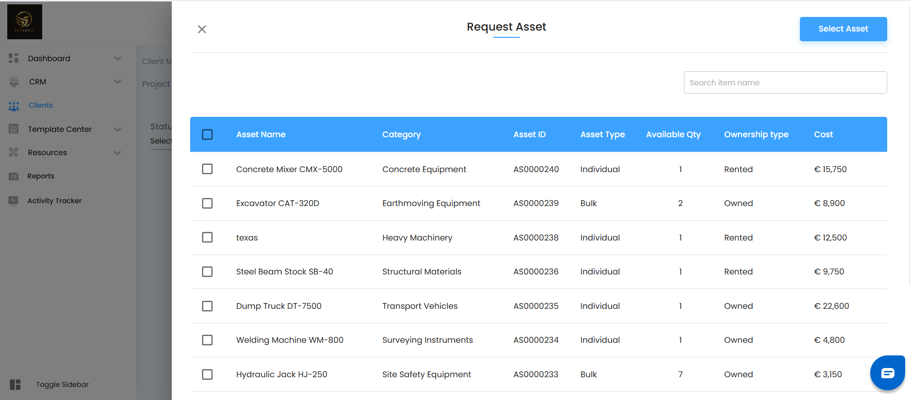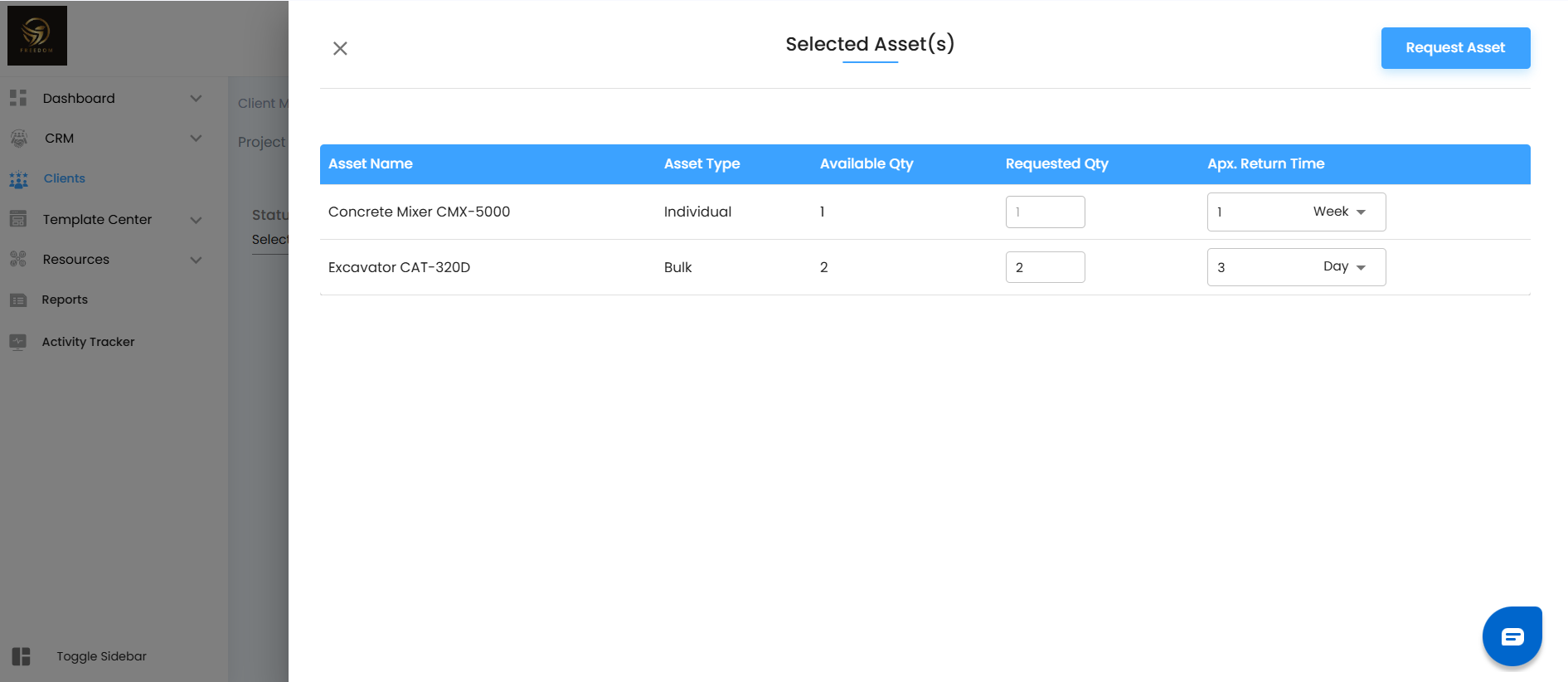 Every great project runs on the right gear at the right time. Whether it’s a crane, a concrete mixer, or just those much-needed helmets, the Request Asset feature makes sure you never have to say, “We’re waiting on equipment.”