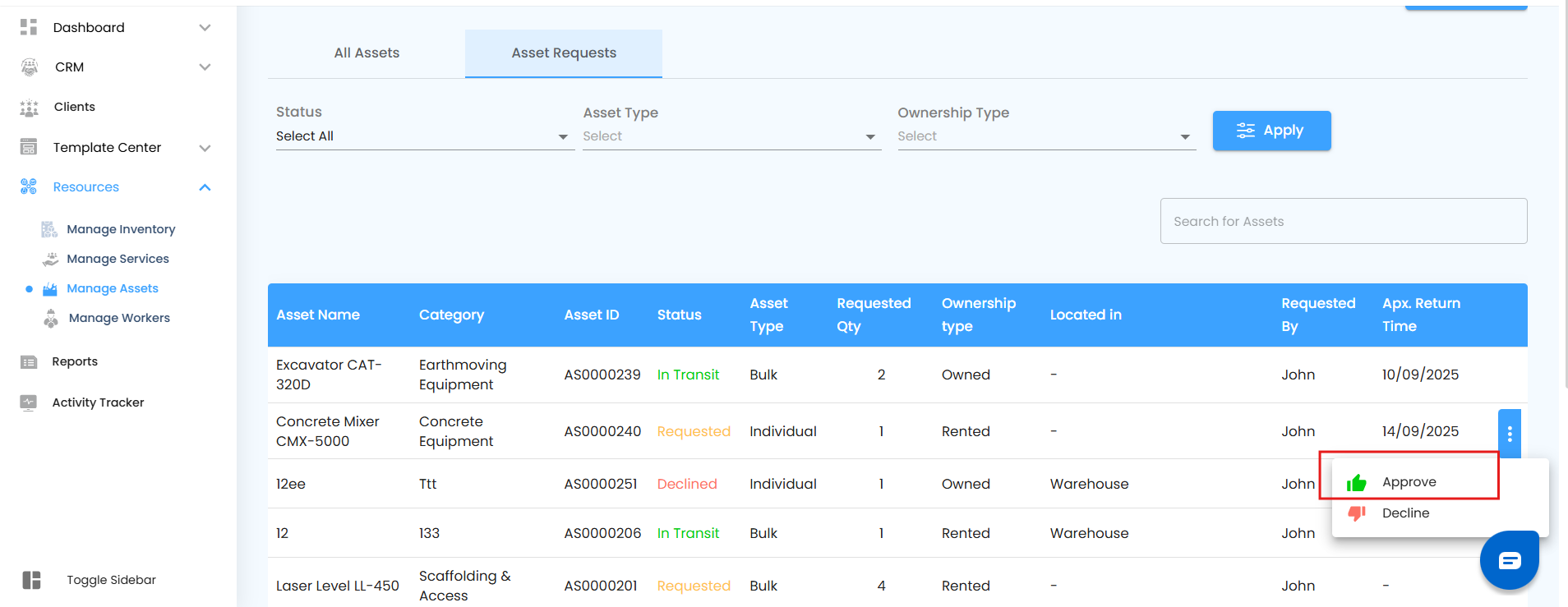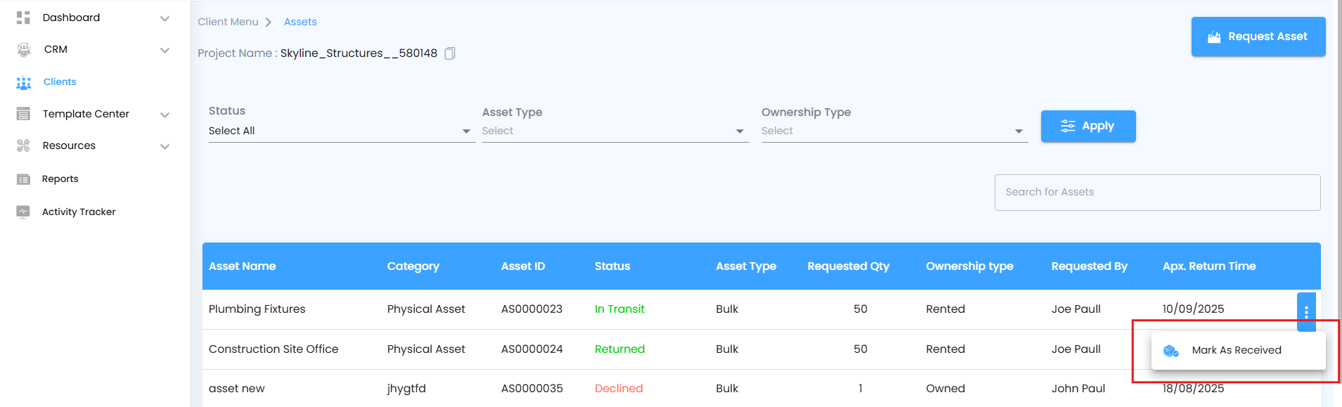 Pro Tip: very critical action — approve, decline, receive, return — happens through the ⋮ (three dots) action button. Think of it as your project’s remote control for asset management. Master it, and you’ll always stay in charge of the journey.
