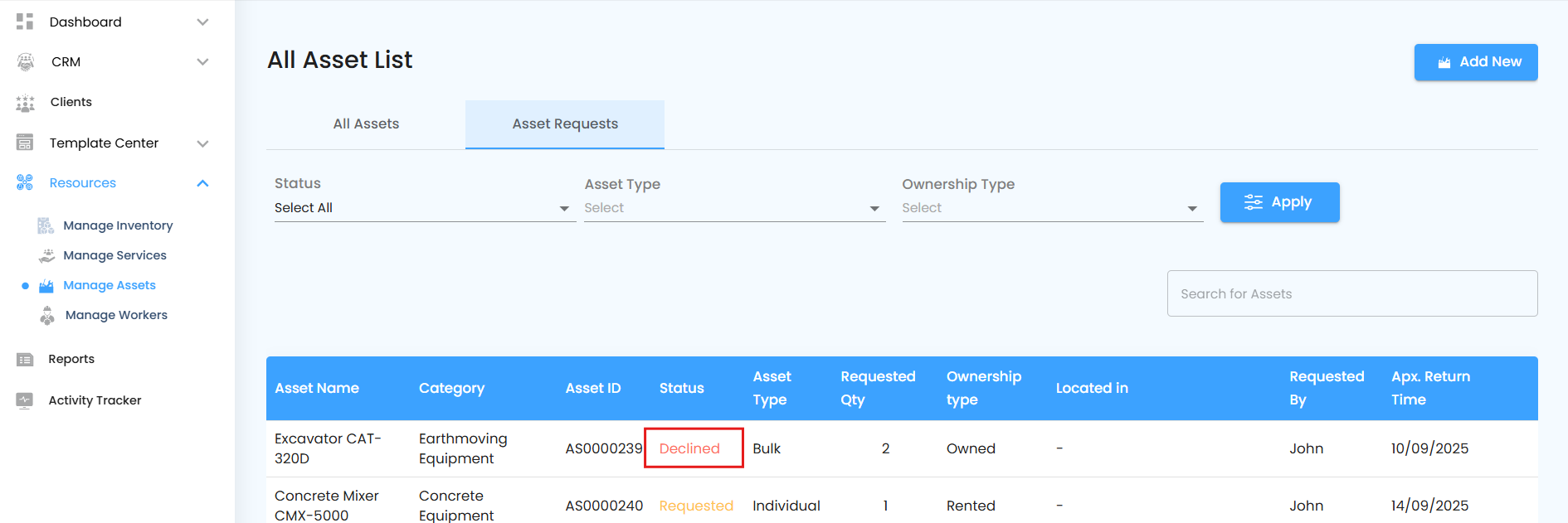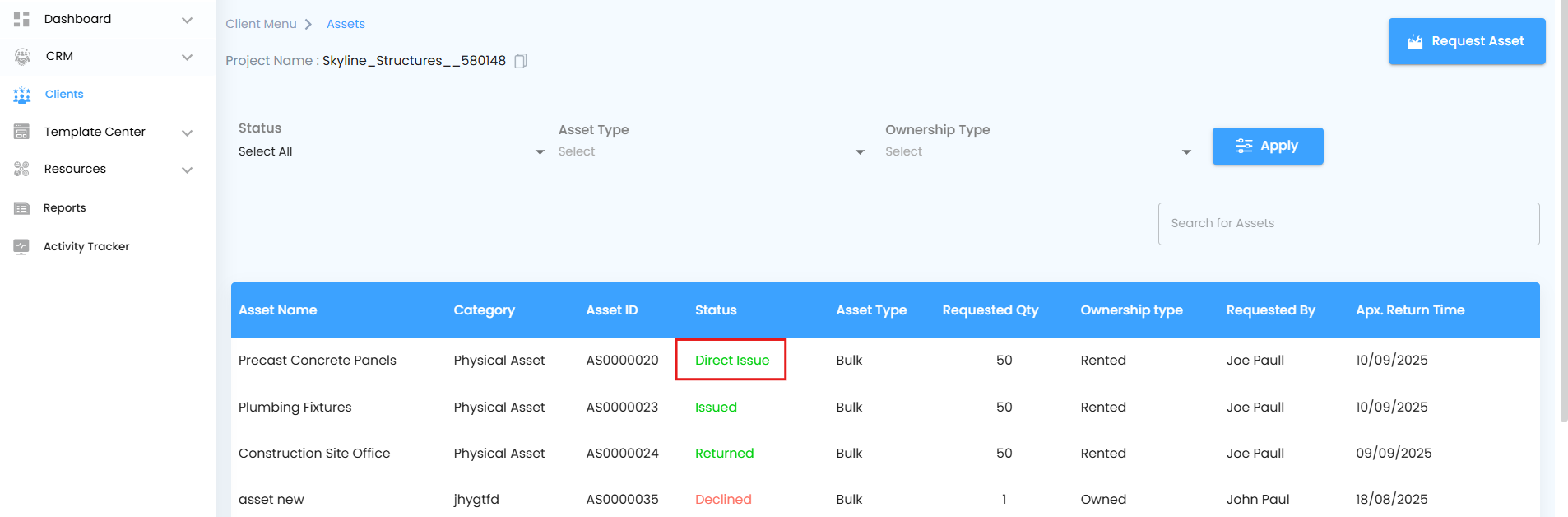 With this structured workflow, assets never go “missing in action.” Every step — request, approval, issue, and return — is tracked with clarity, ensuring your project always has the right resources at the right time.