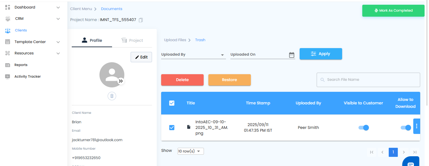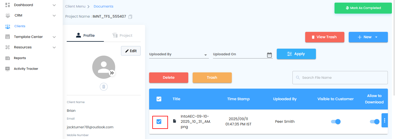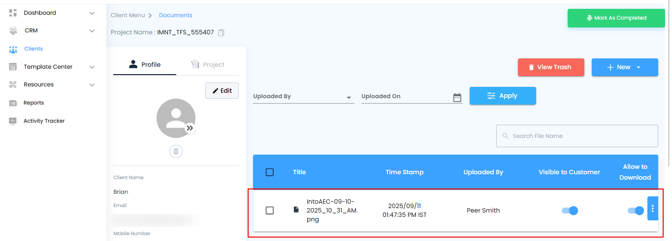 Visible to Customers – Enable this toggle to make the file accessible to customers (e.g., through client portals or shared views).