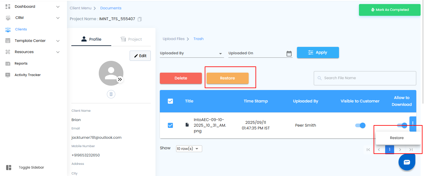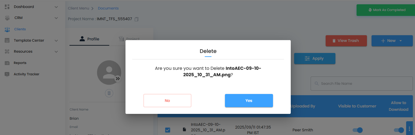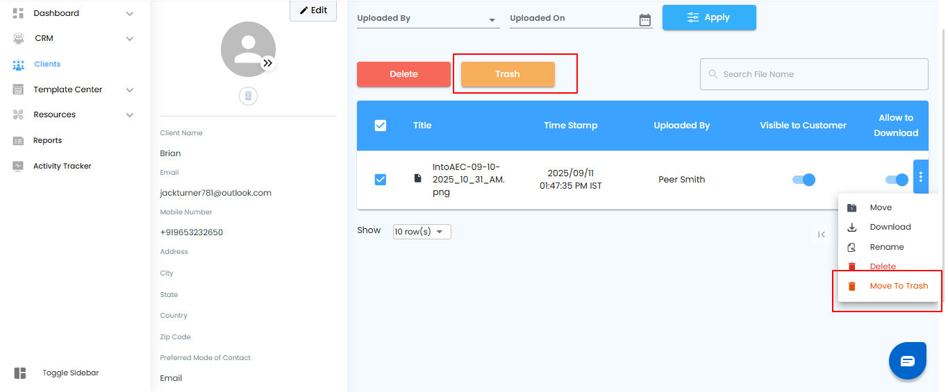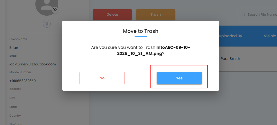 Once moved, the item will appear in the Trash section, where you can either restore it later or delete it permanently.