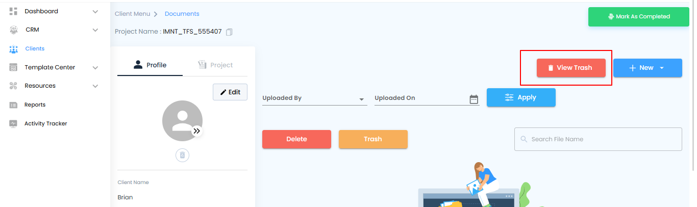 Click View Trash to open the Trash section. From here, you can review all trashed items, restore what you need, or clear out files permanently.