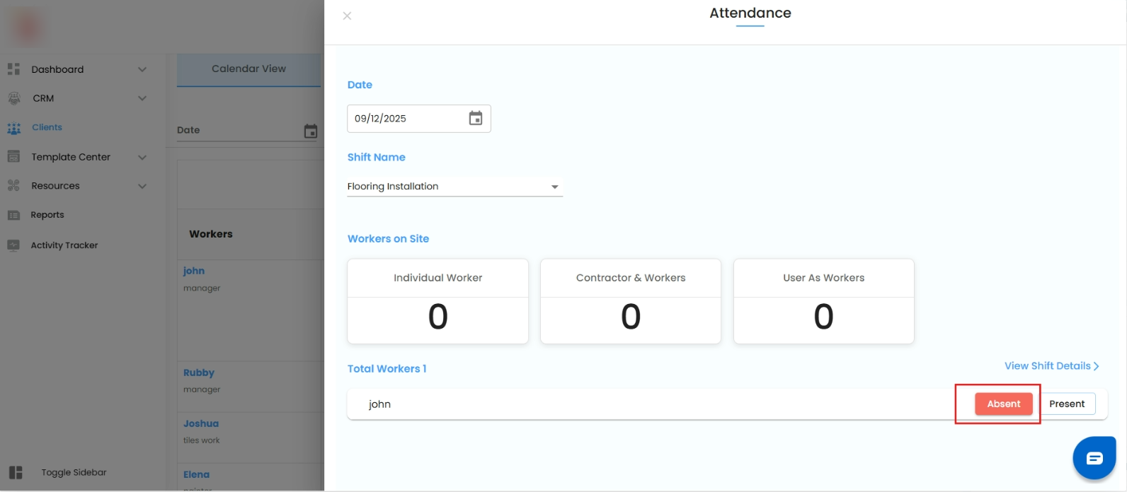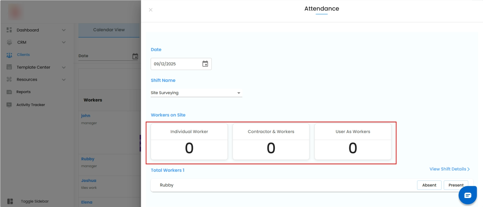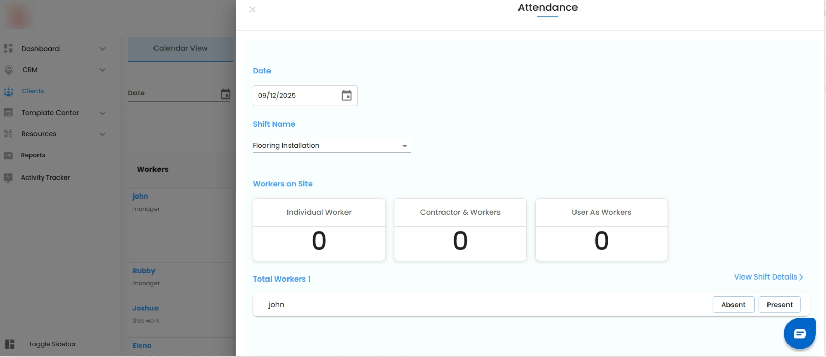 Workers On Site Section → A visual dashboard of who’s scheduled.