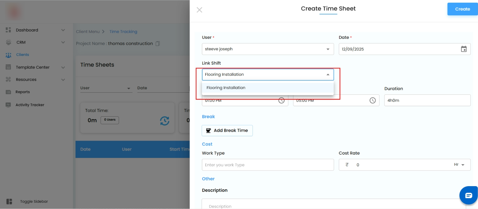 Shift Linking → While creating that Timesheet, you need to link it to the correct Shift. This ensures the system knows which shift’s attendance is being tracked.