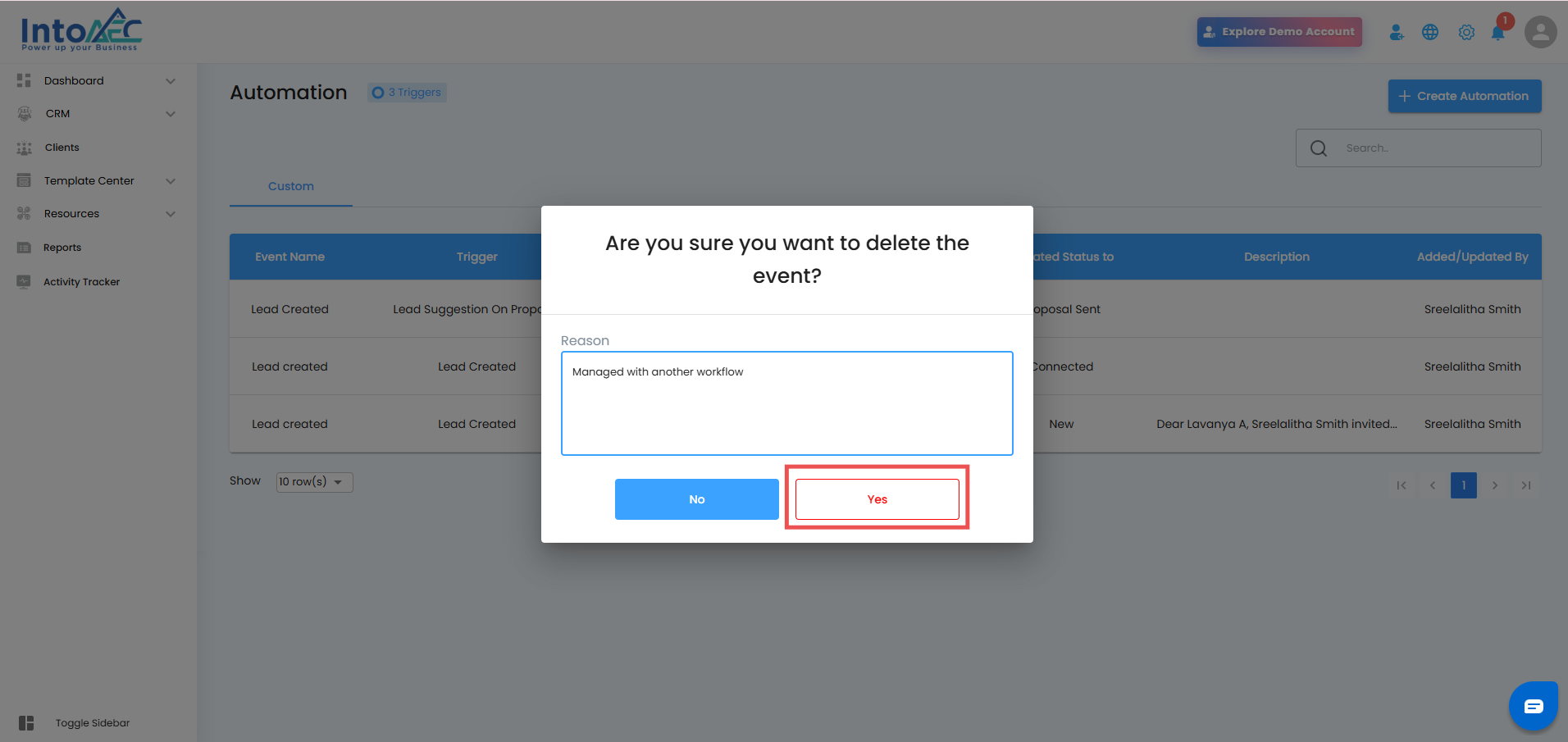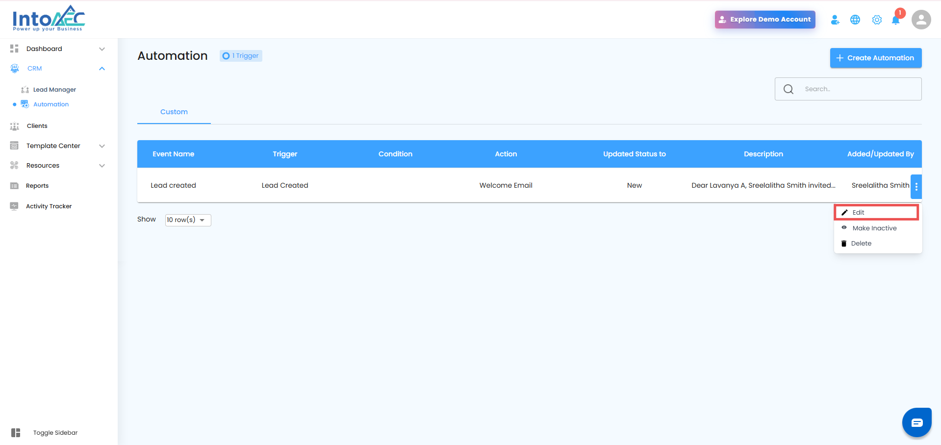 Creating automations is only the first step. Over time, you may need to edit, pause, or even delete them as your workflows evolve. INTOAEC gives you complete flexibility to manage automations with just a few clicks.