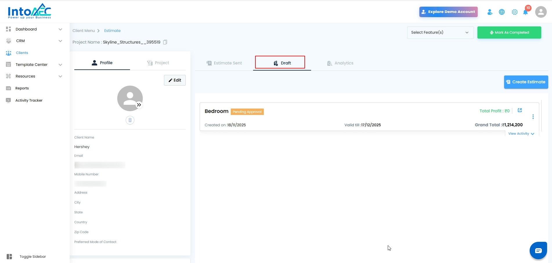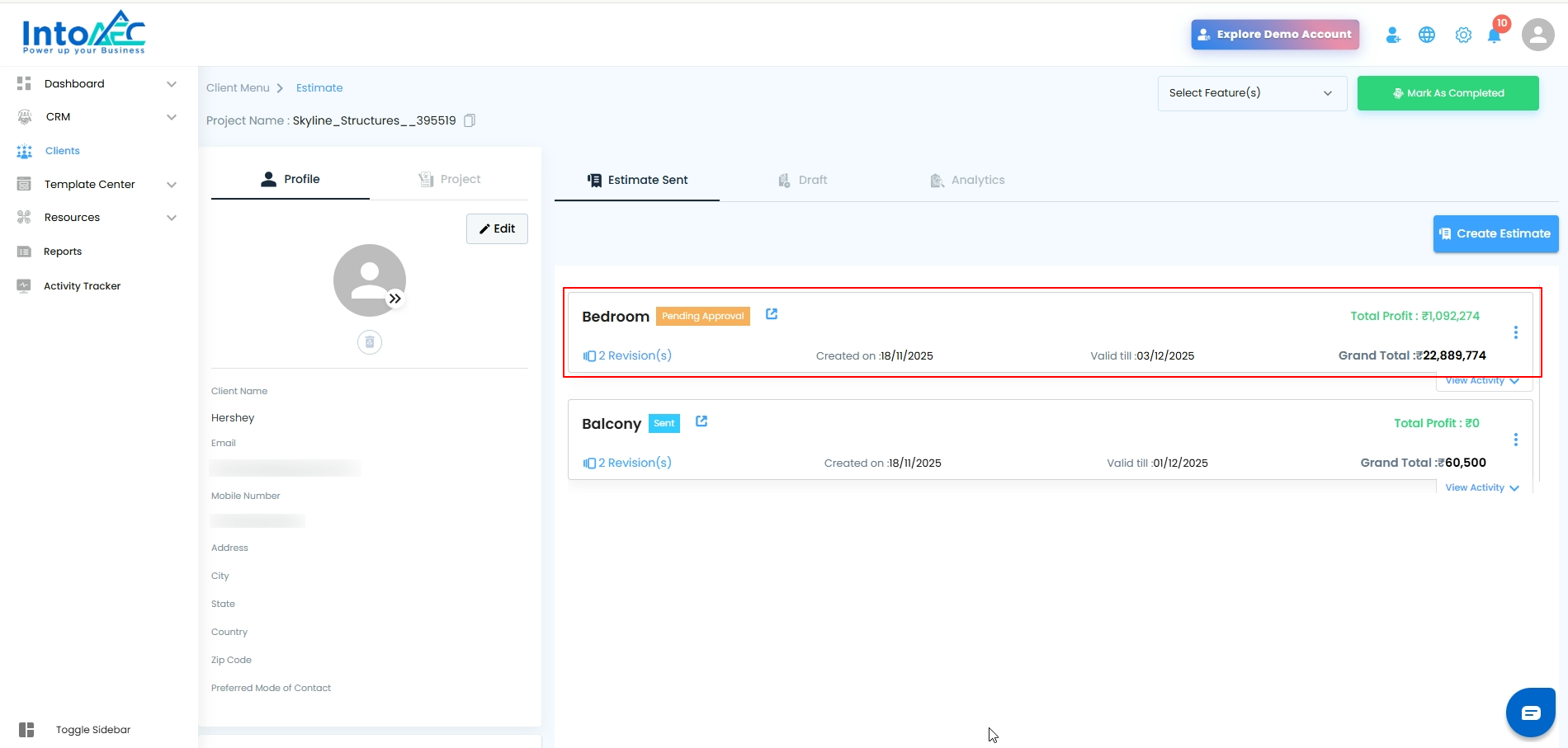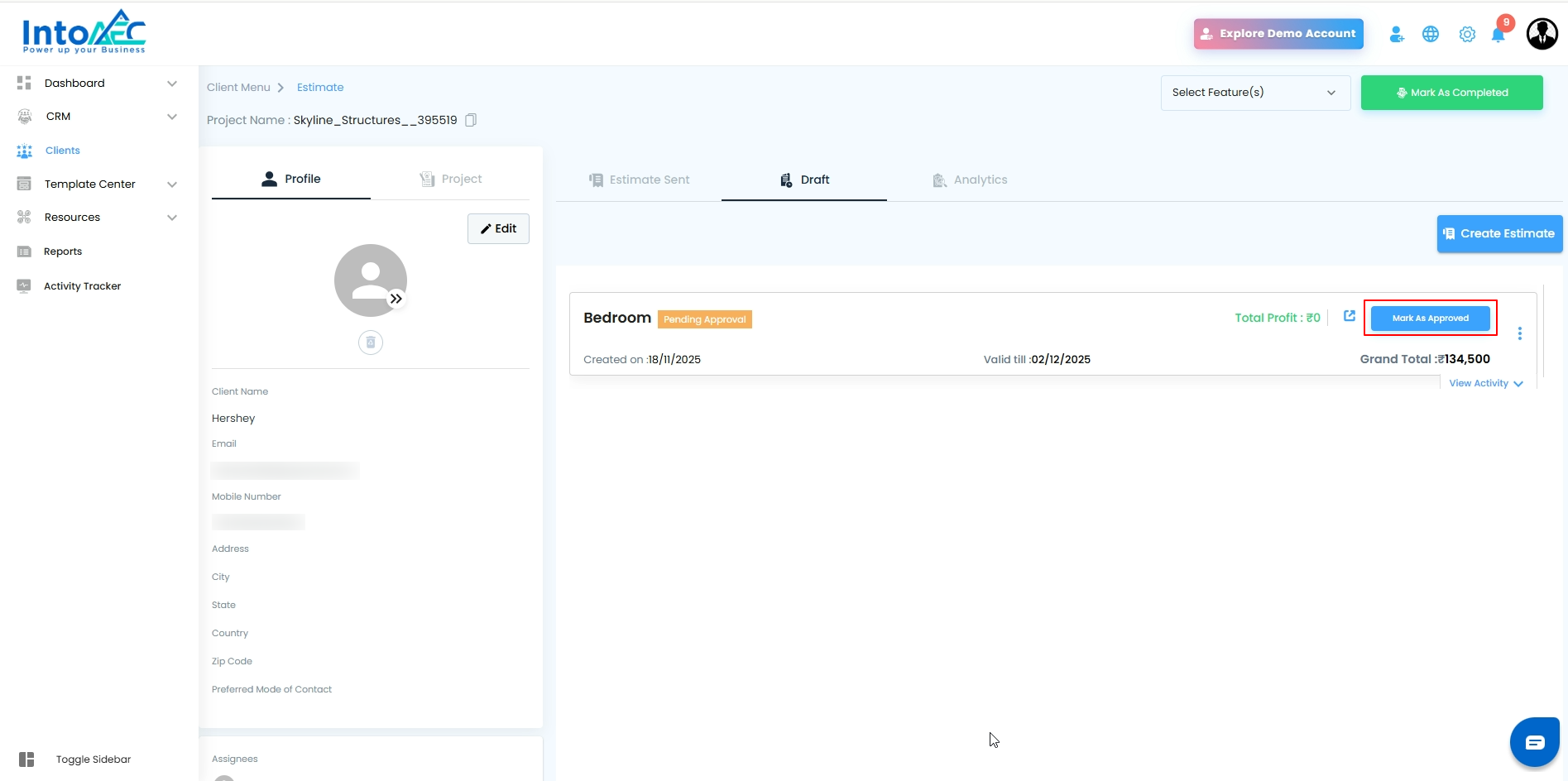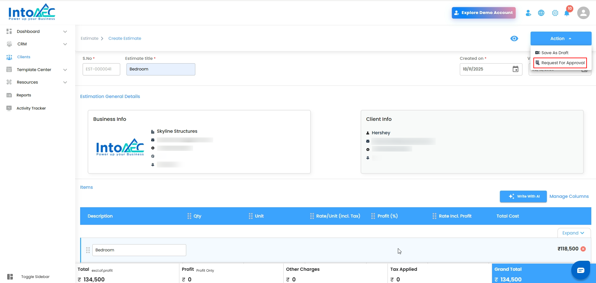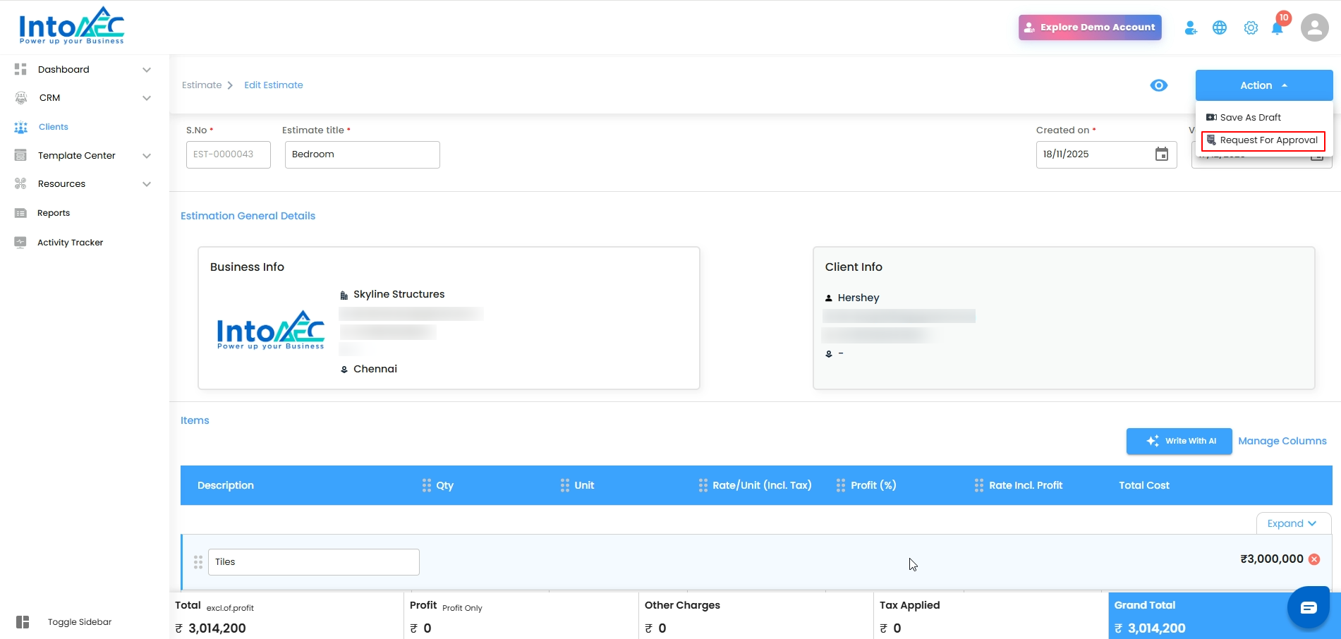This article explains how users can request approval for an estimate, how super admins can approve or send the estimate, and how to edit an estimate that is in Pending Approval status.